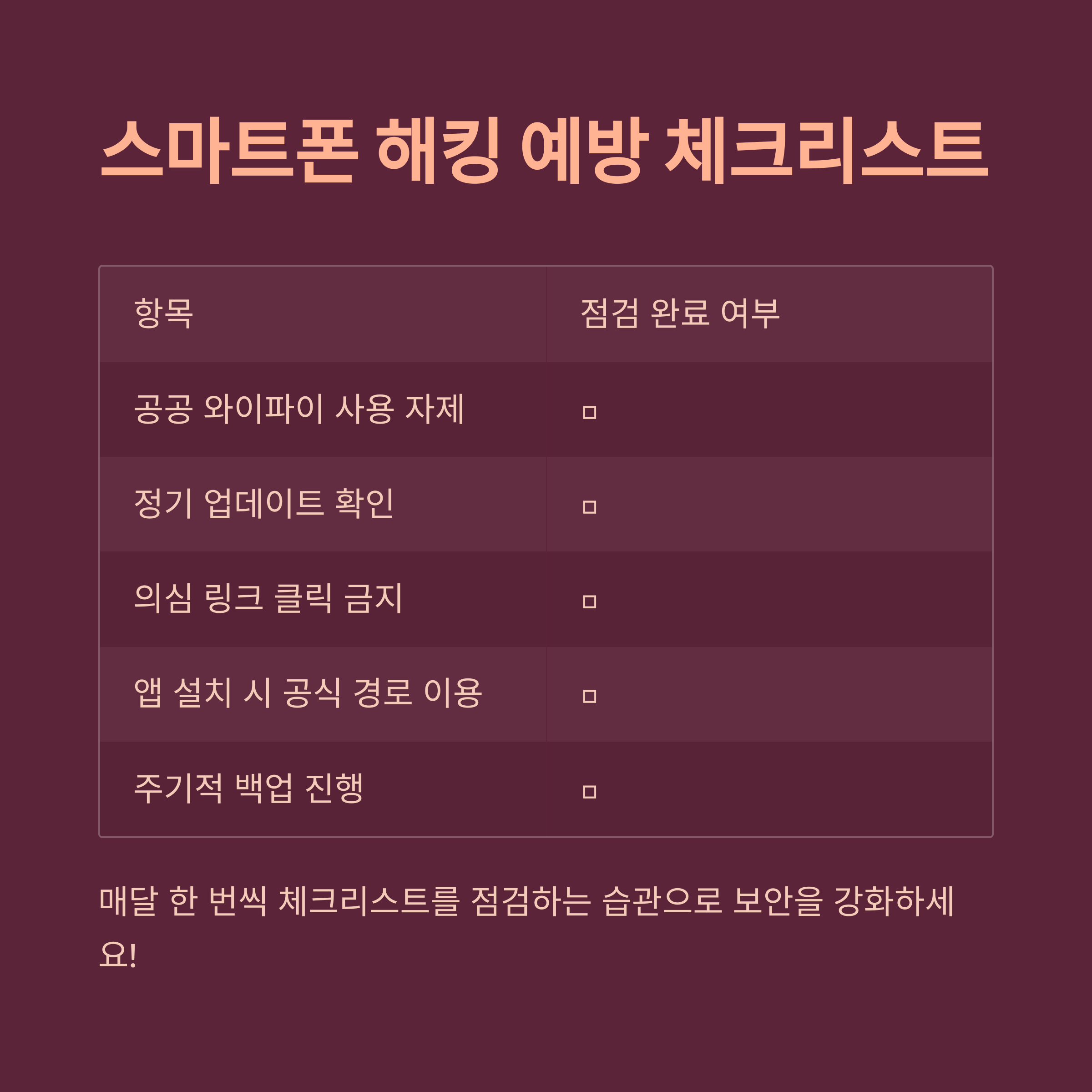 스마트폰 해킹 예방 체크리스트 (표로 한눈에)