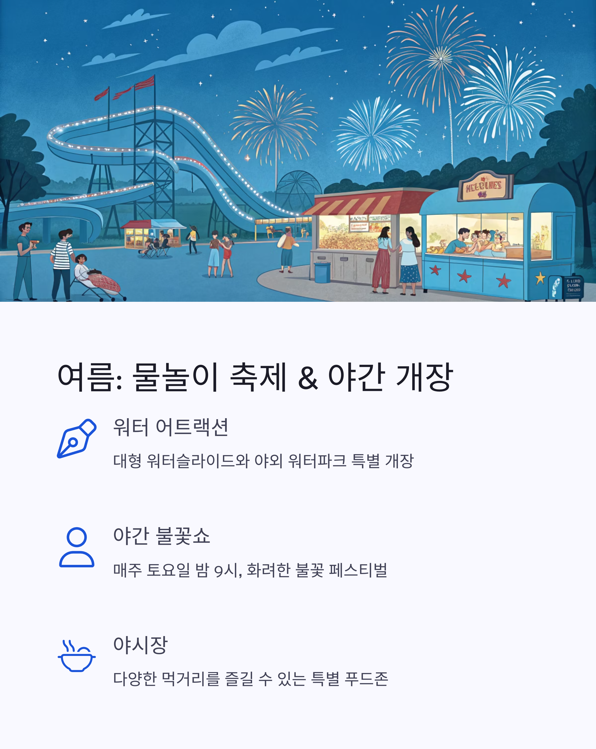 여름 시즌 - 물놀이 축제와 야간 개장 이벤트