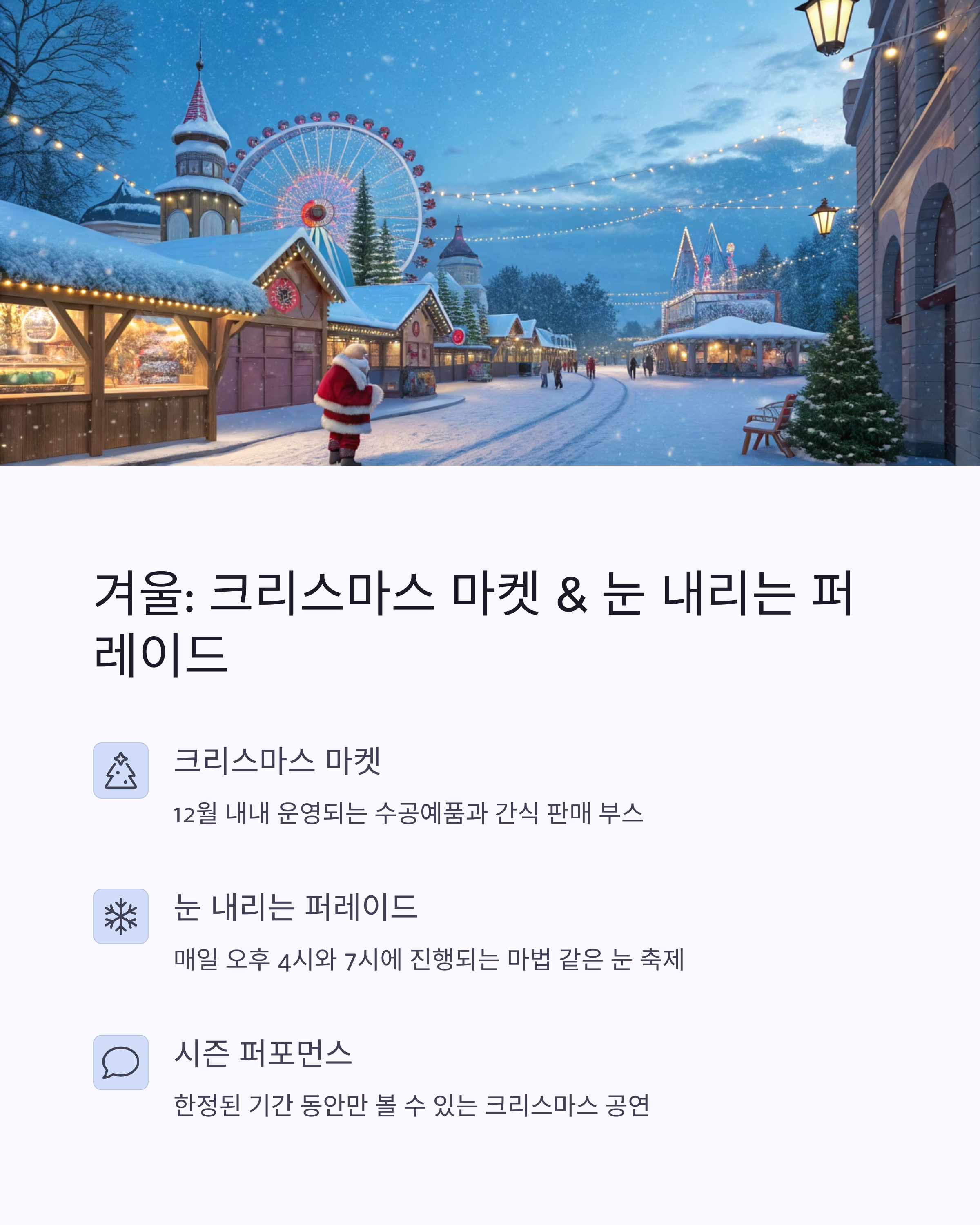 예: 에버랜드 ‘윈터 원더랜드’, 롯데월드 ‘크리스마스 미라클’