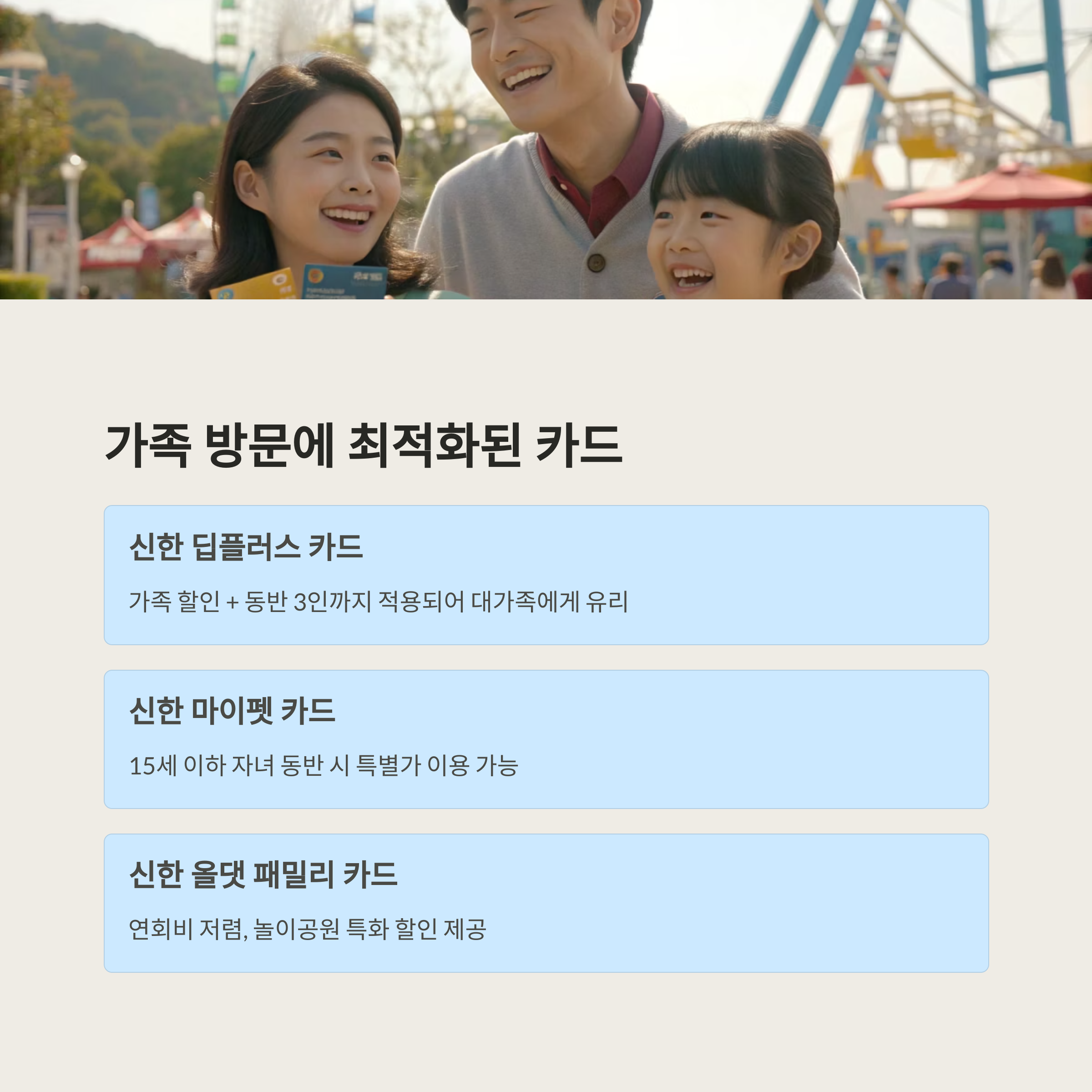 가족 단위로 놀이공원을 자주 방문한다면, 다음 카드들을 추천드립니다.