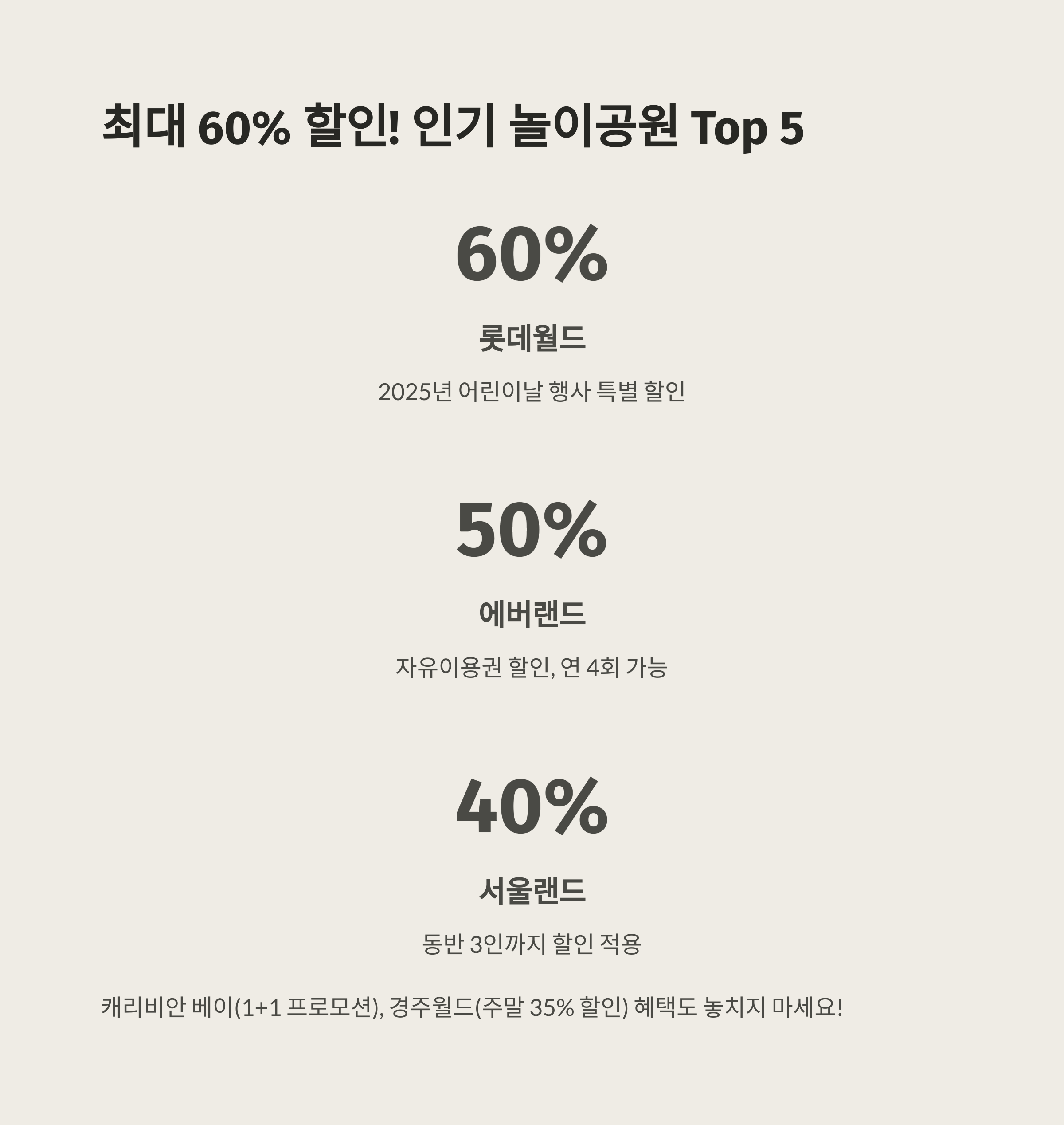 가장 할인율 높은 인기 놀이공원 Best 5