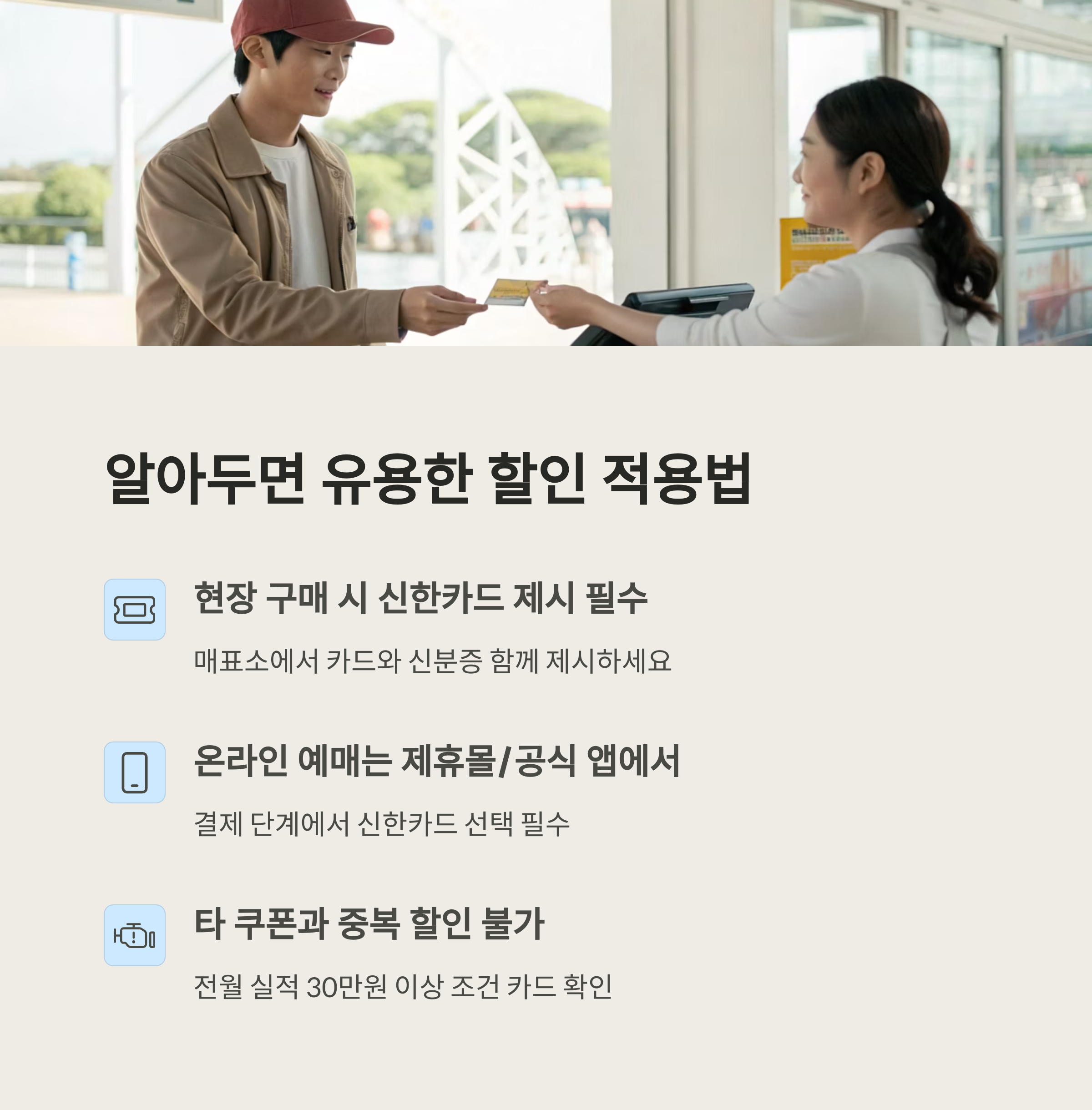 "오늘 바로 내 신한카드를 체크하고, 스마트한 놀이공원 여행을 시작해보세요!"