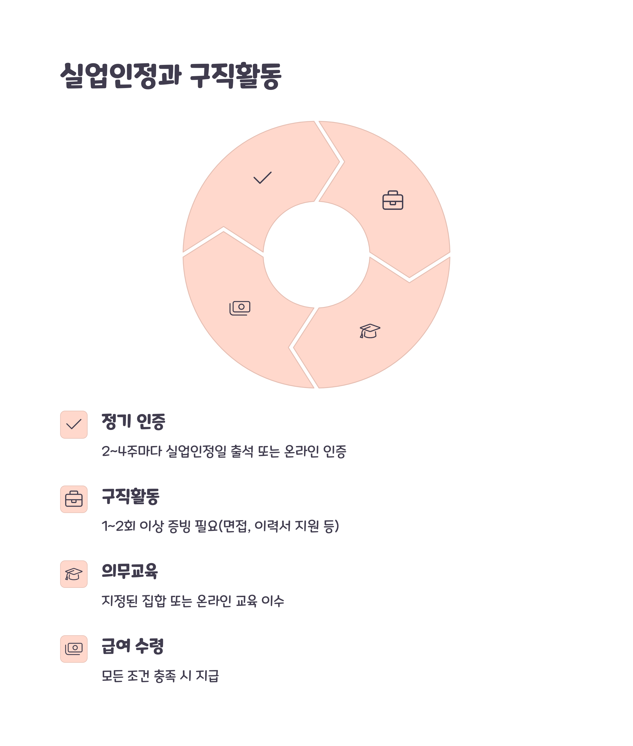 "매 2주마다 실업인정을 받아야 계속 수급할 수 있어요"