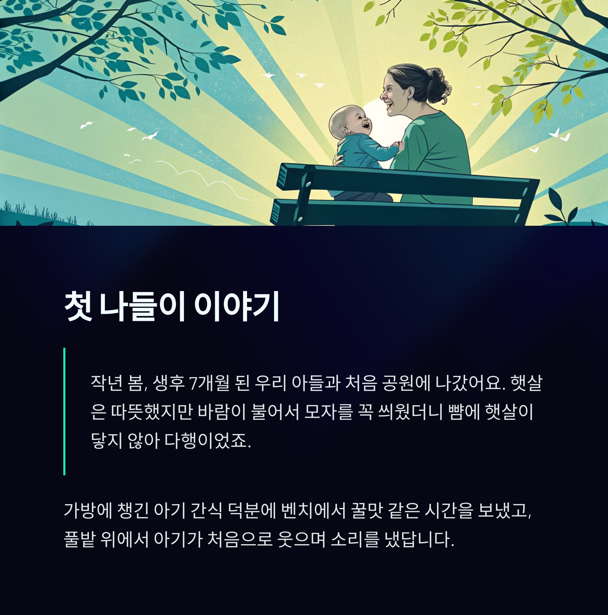 "작년 봄, 생후 7개월 된 우리 아들과 처음 공원에 나갔어요.
