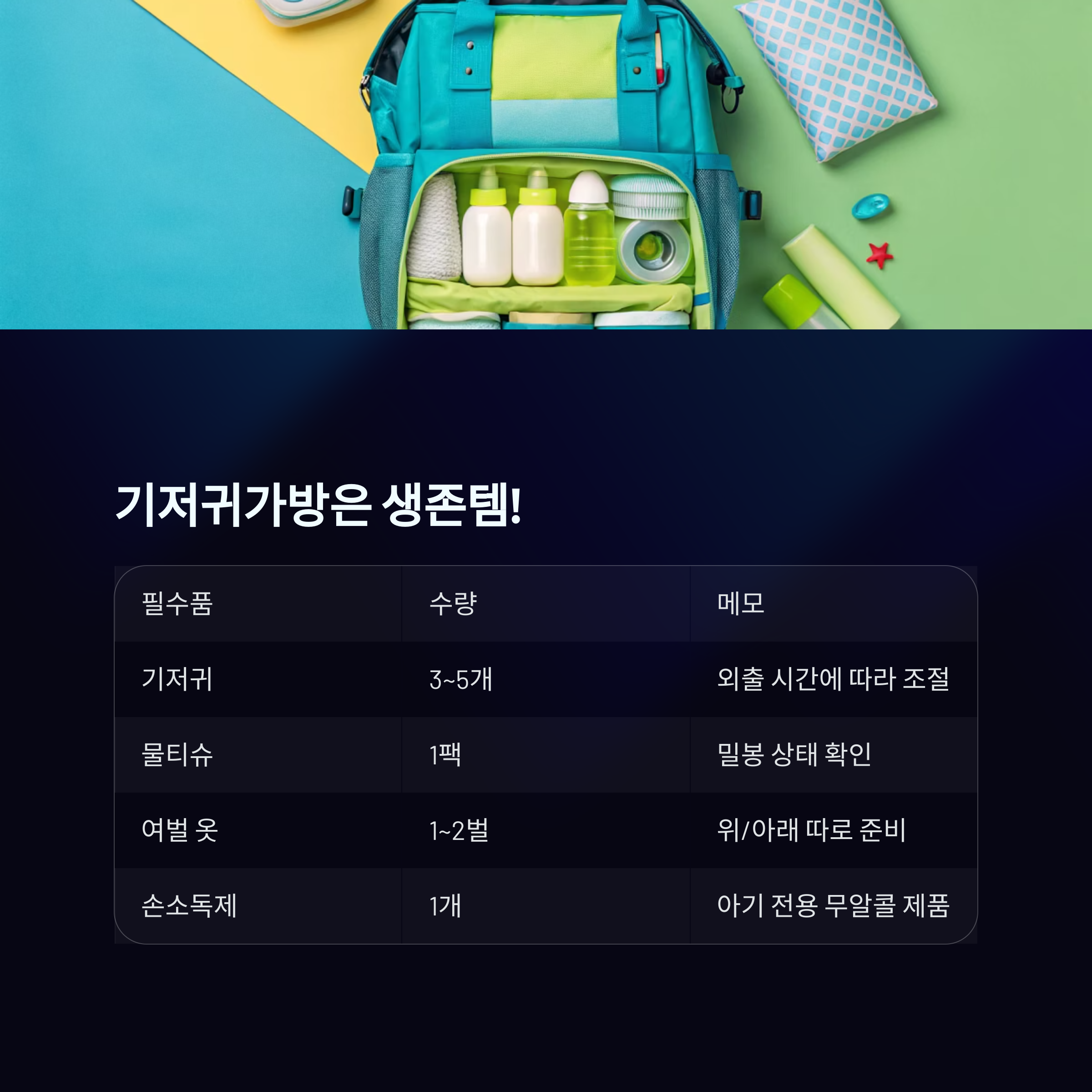 이럴 때 가장 중요한 건 완벽한 기저귀가방 구성입니다.