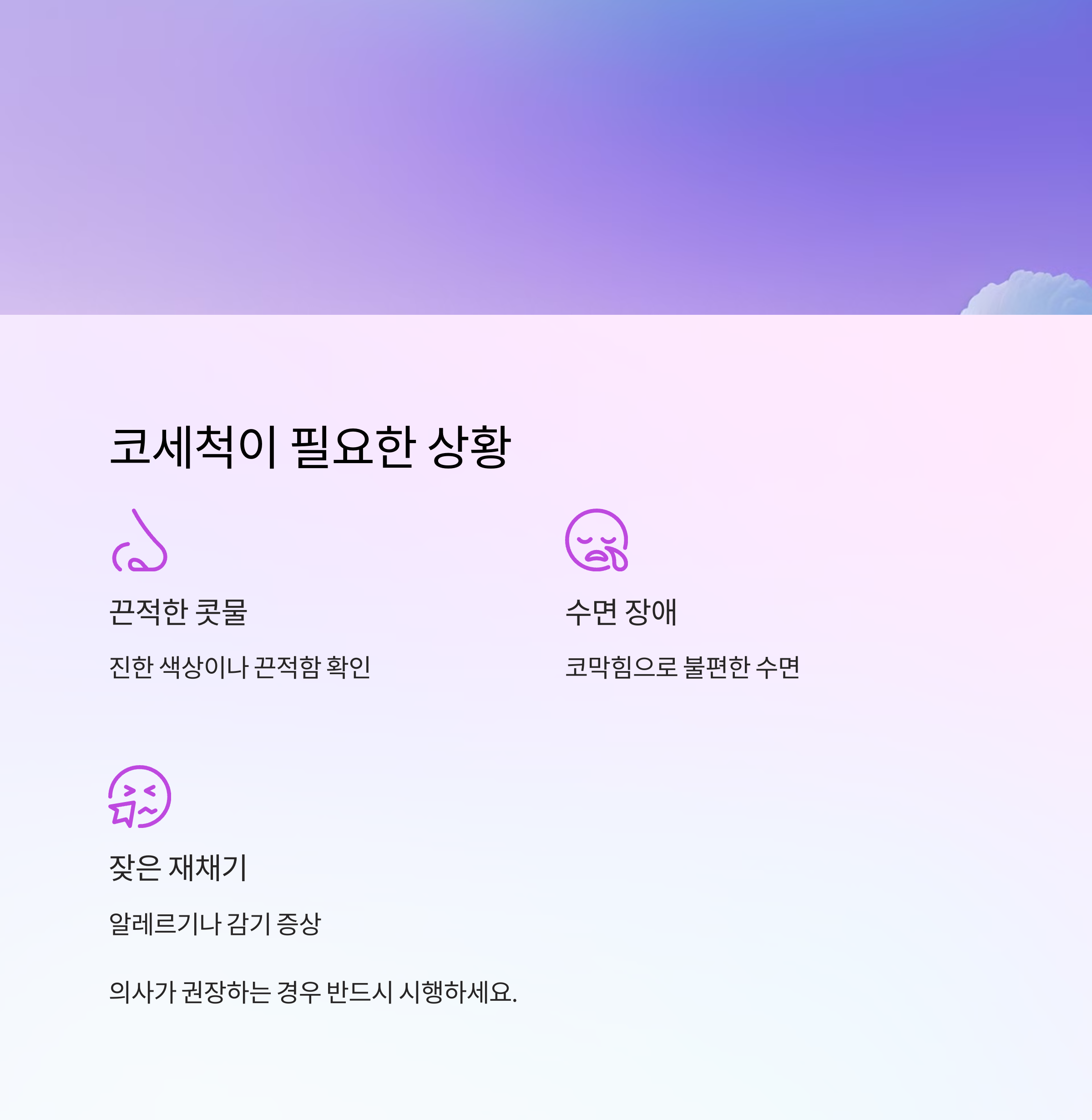 또한 콧물이 오래 코 안에 머물면 세균 증식, 중이염으로 이어질 수 있어 사전 관리가 중요합니다.