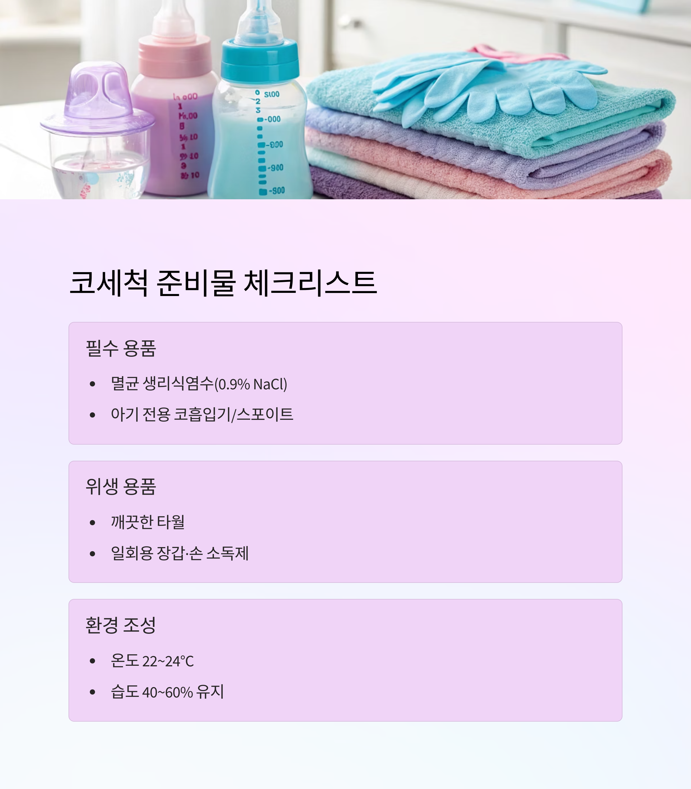 "안전하고 위생적인 도구를 사용해야 아기의 불편도 줄고 감염 위험도 낮아져요."
