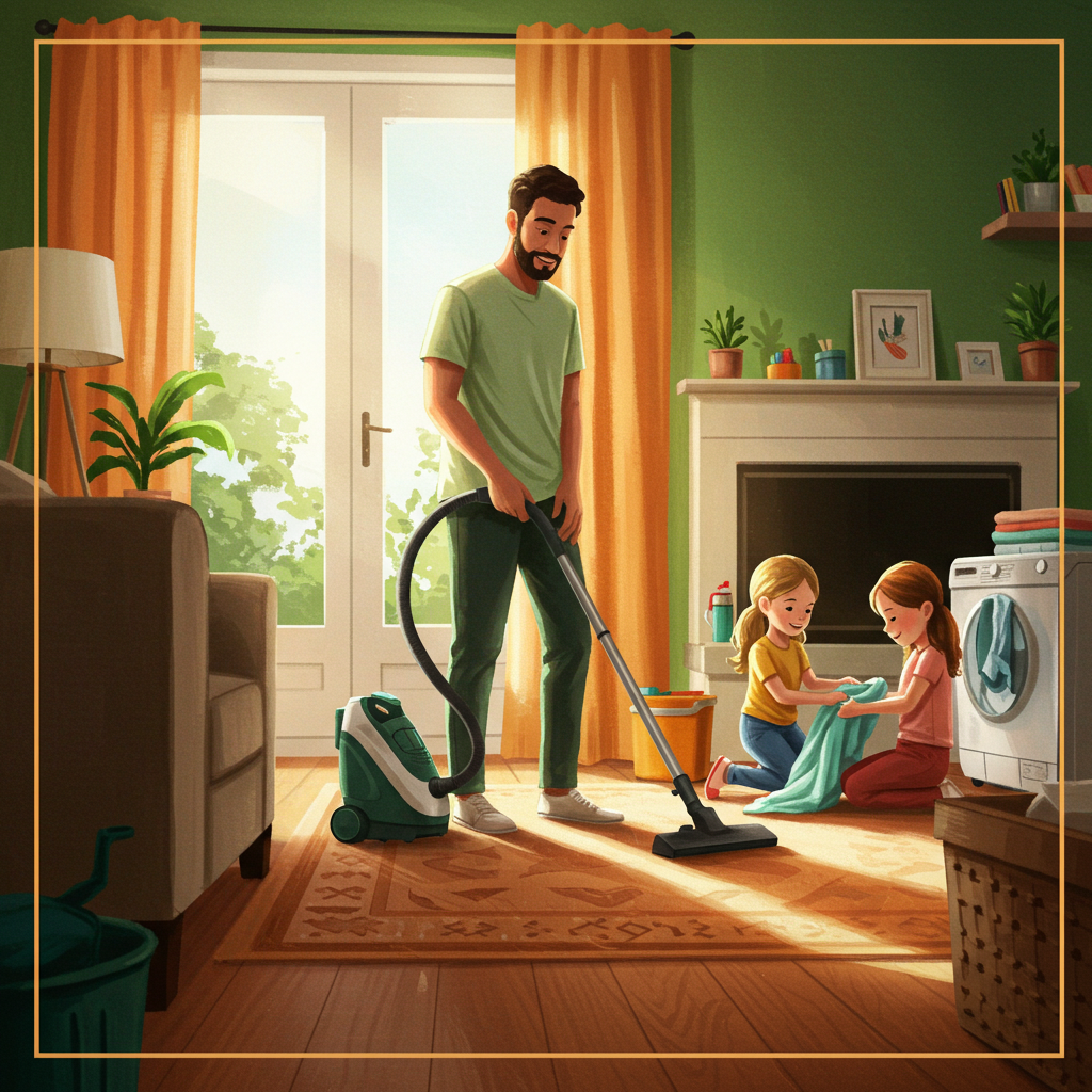주말에 온 가족이 함께 대청소를 하는 것도 좋은 방법이고요. 🧹