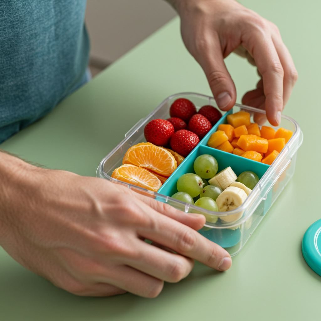 아침은 스피드가 생명이죠. 전날 저녁, 아이가 잠든 후에 과일 몇 종류를 미리 씻어두세요. 딸기, 포도 등 껍질째 먹는 과일은 미리 세척해서 물기를 빼놓으면 다음 날 아침에 바로 담기만 하면 됩니다. - 2. '용기'만 잘 골라도 절반은 성공!