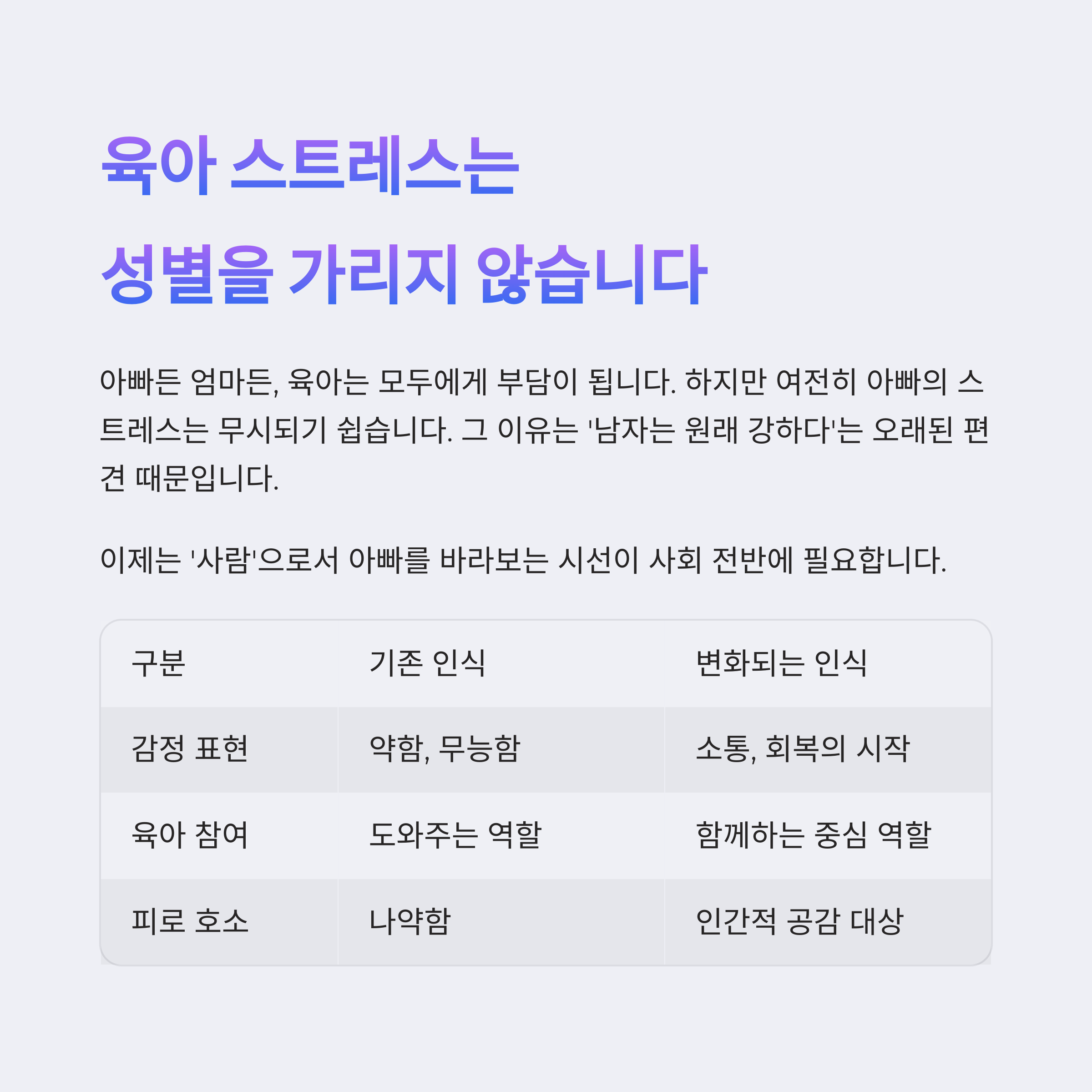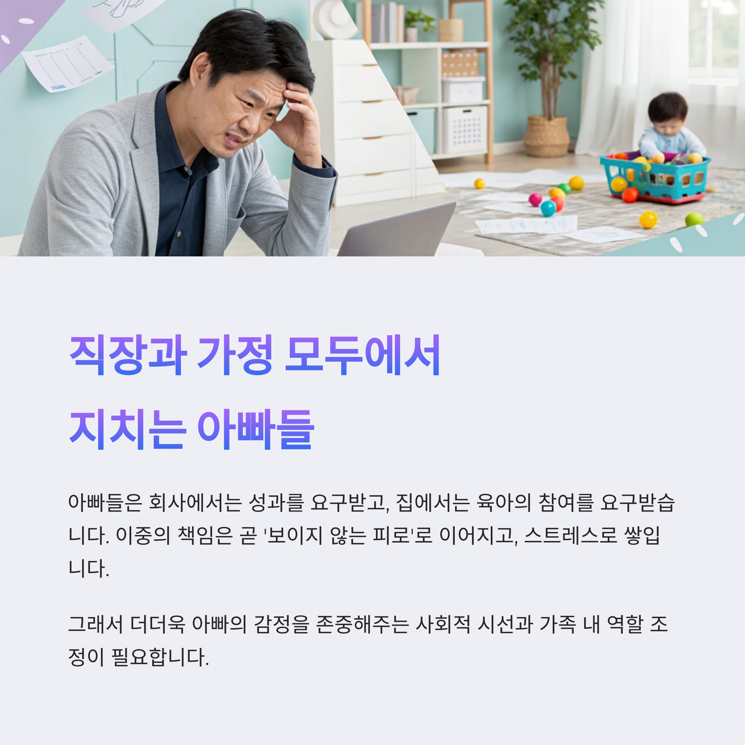 이제는 아빠의 스트레스 역시 공감하고, 존중받아야 한다는