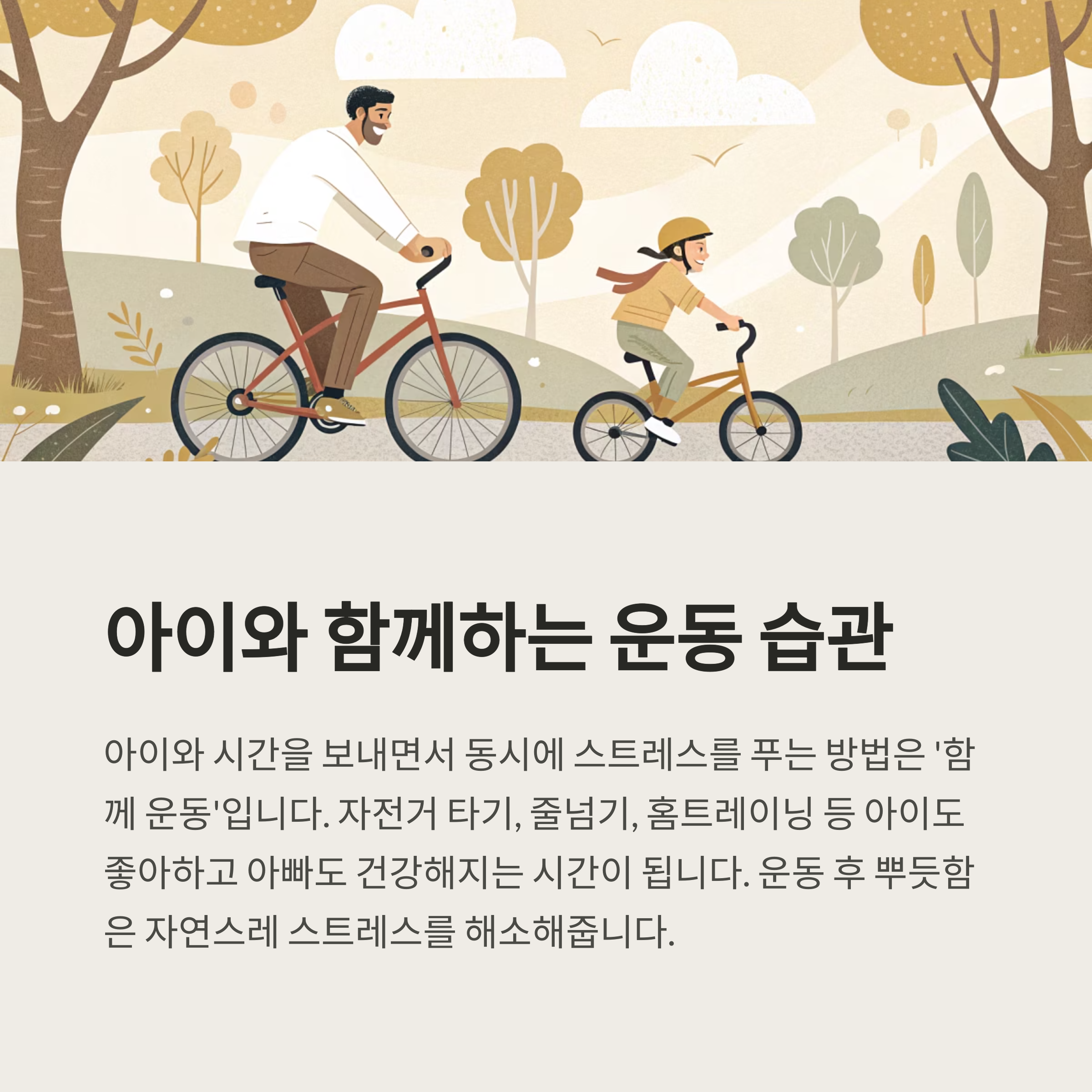 자전거 타기, 줄넘기, 홈트레이닝 등 아이도 좋아하고 아빠도 건강해지는