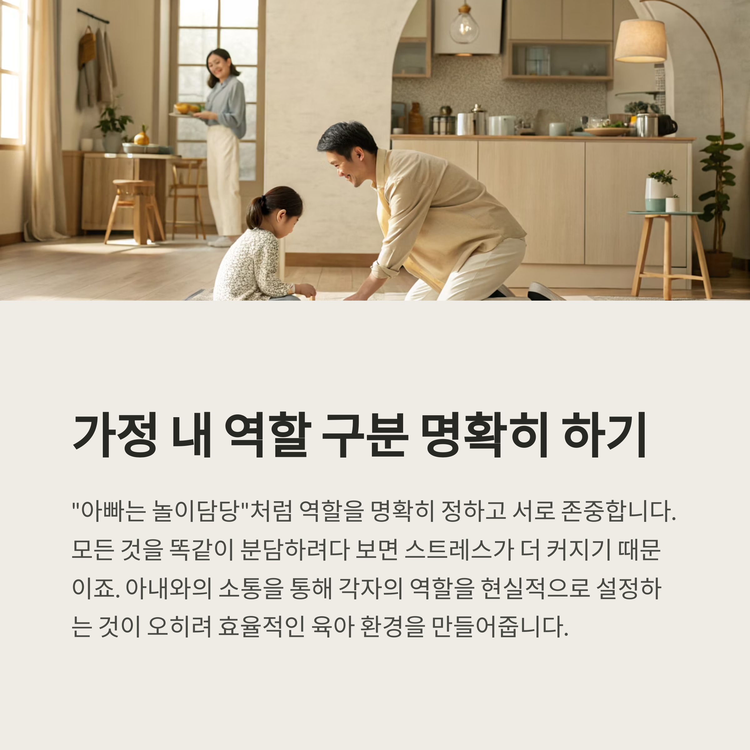 “아빠는 놀이담당”처럼 역할을 명확히 정하고 서로 존중합니다.