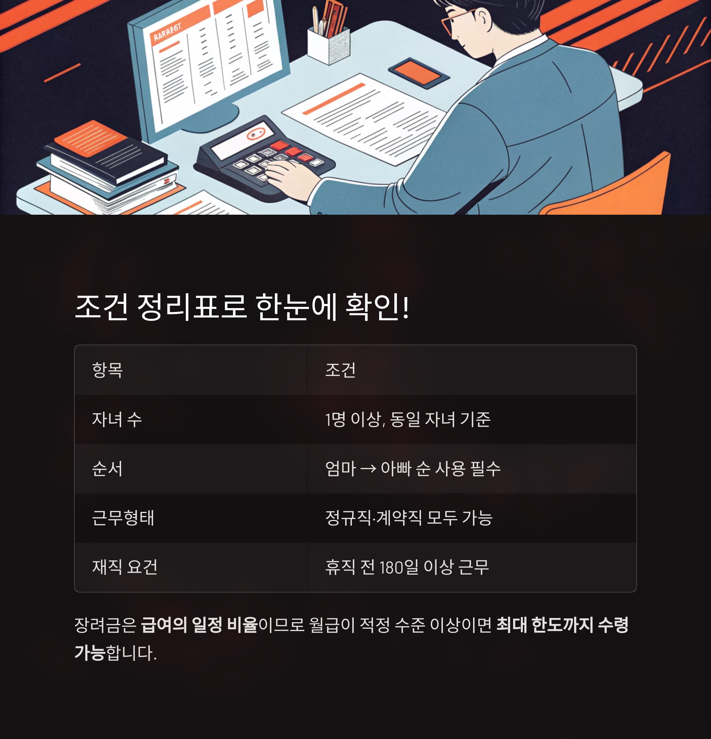| 자녀 수 | 1명 이상, 동일 자녀 기준 |