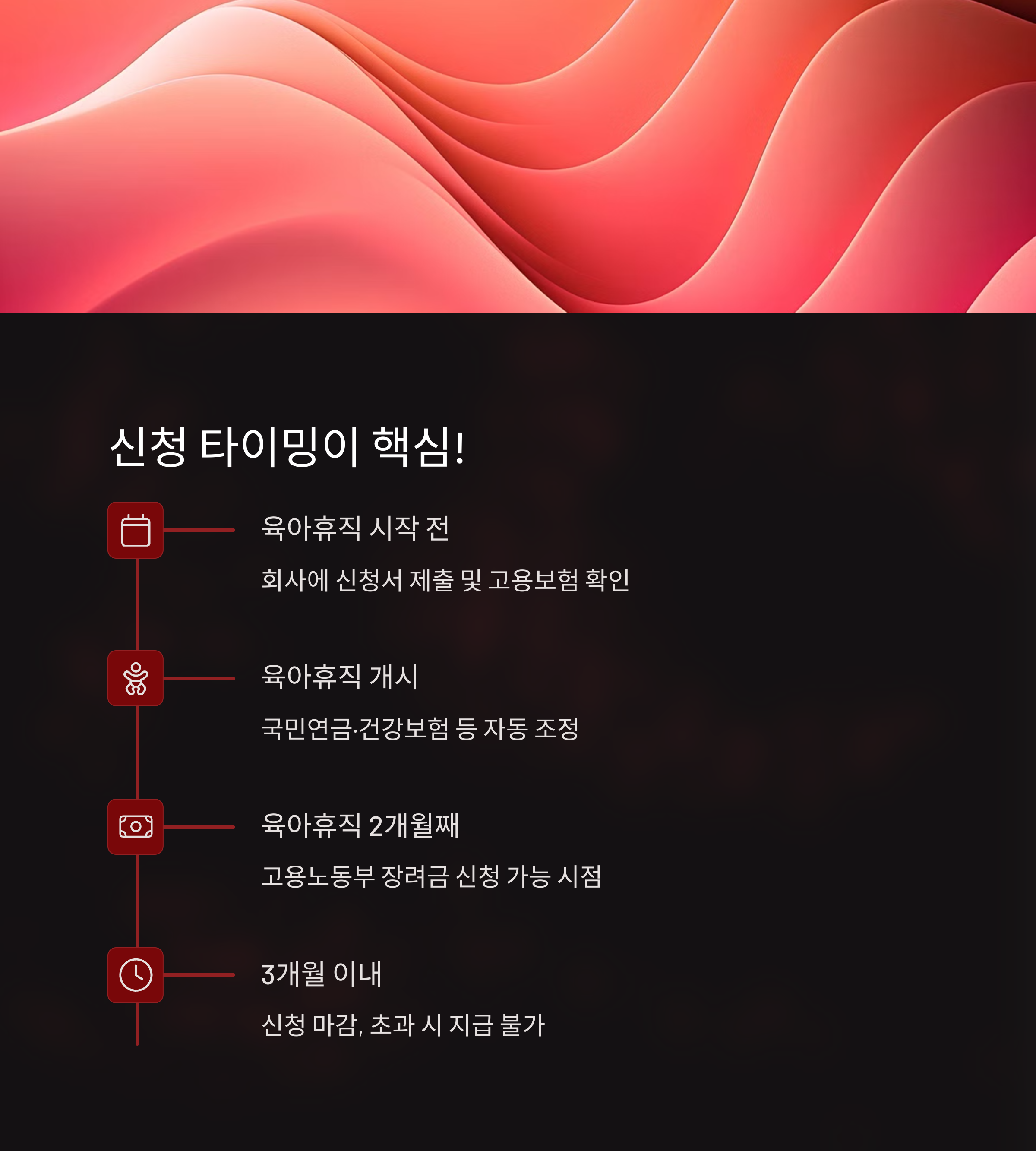 | 육아휴직 시작 전 | 회사에 신청서 제출 및 고용보험 확인 |