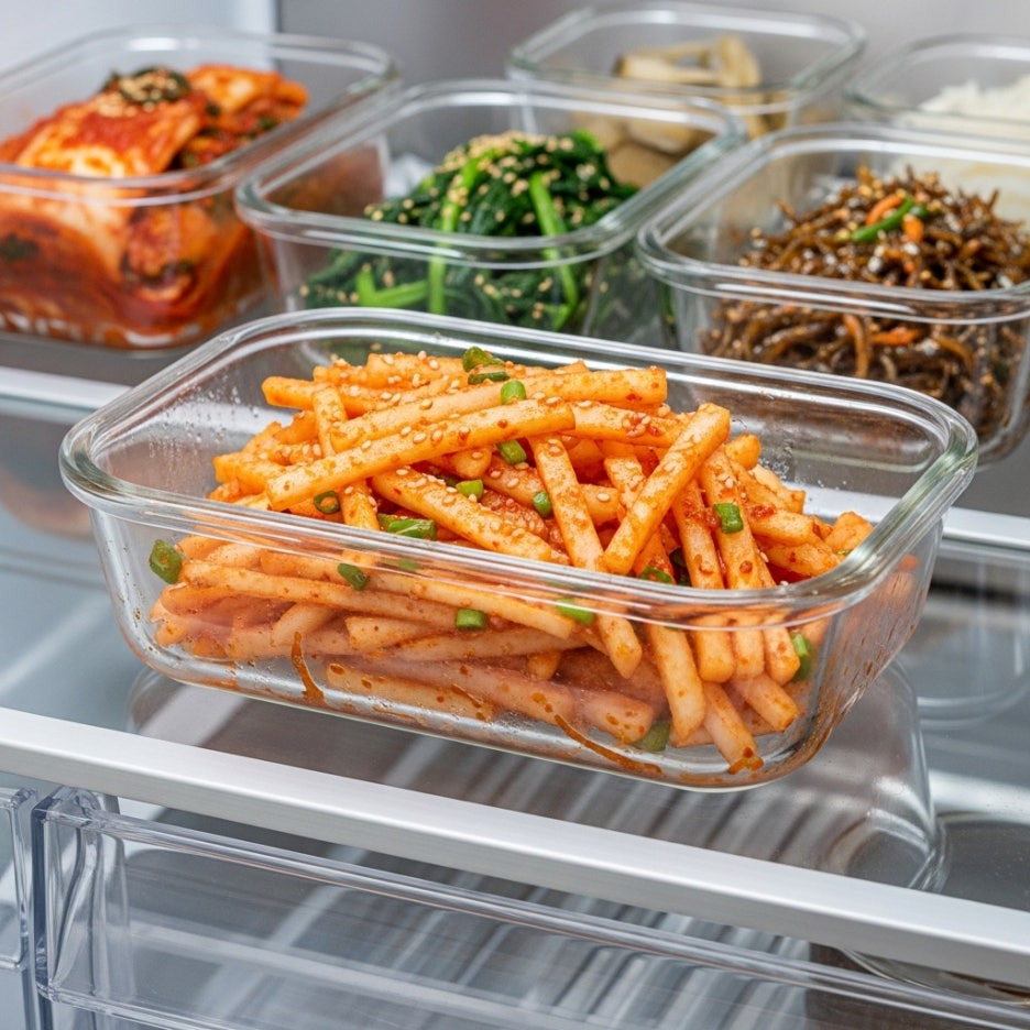 완성된 무생채는 밀폐 용기에 담아 냉장고에서 1시간 정도 숙성시킨 뒤 드시는 것이 가장 맛있습니다.