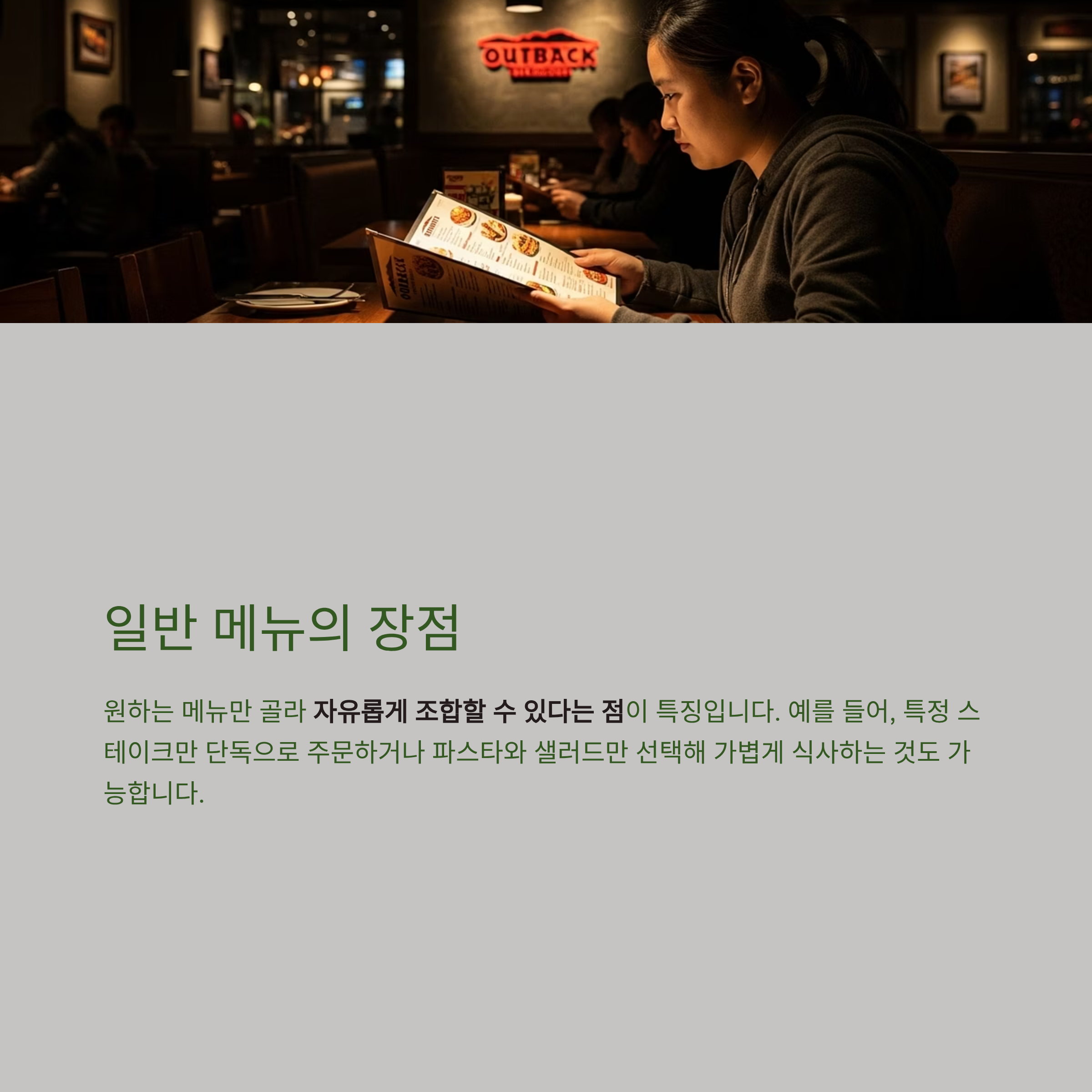 아웃백 스테이크하우스를 방문할 때, 런치세트와 일반 메뉴의 차이를 알면