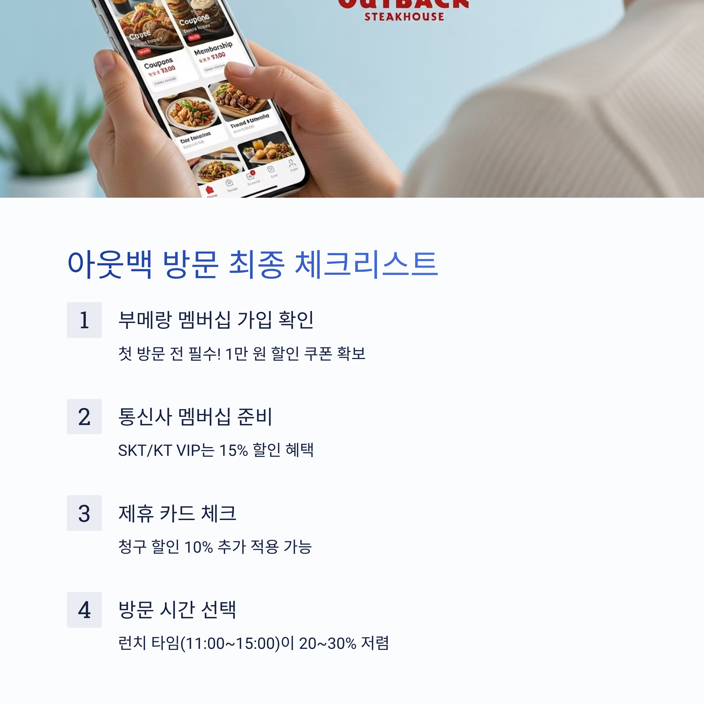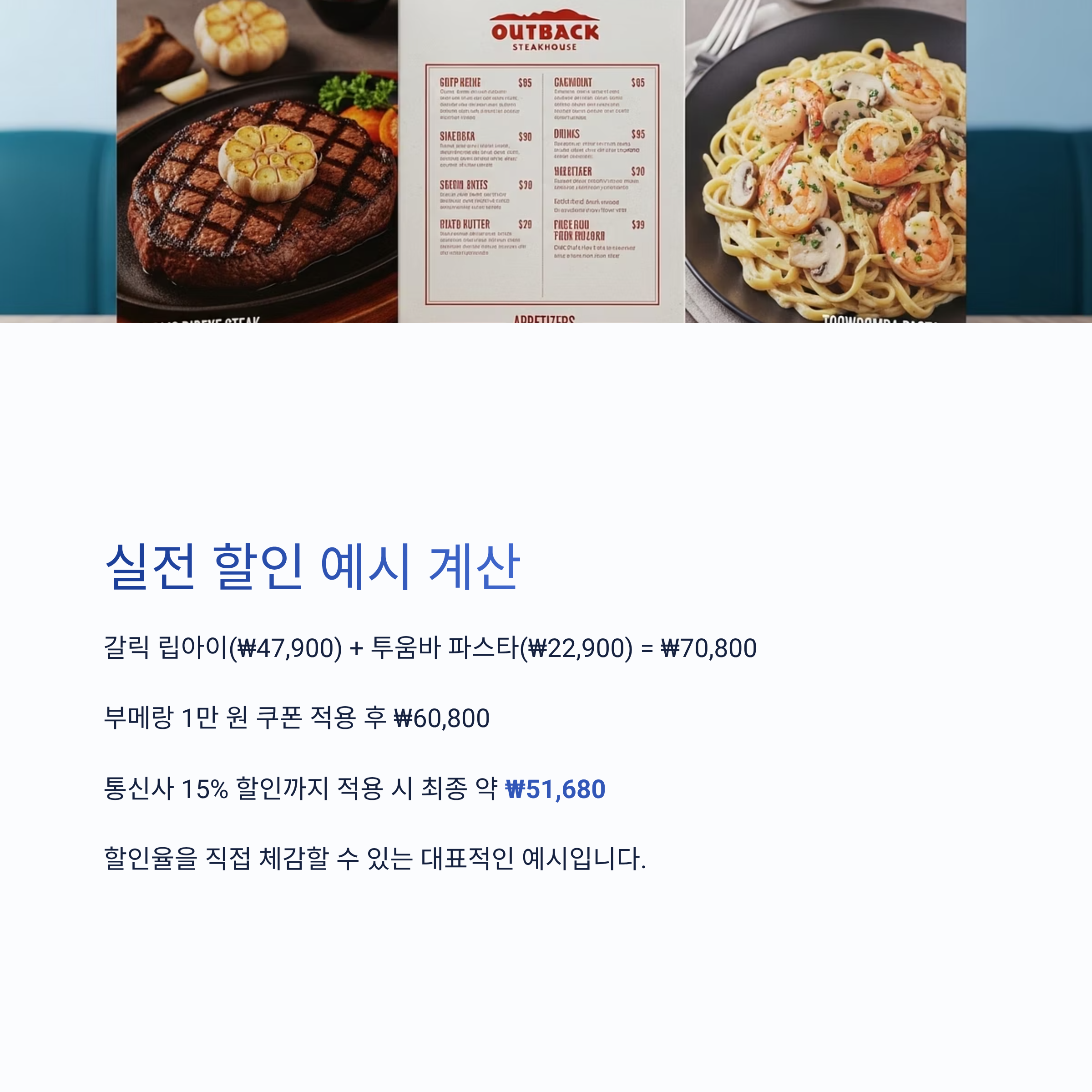 아웃백 스테이크하우스를 방문할 때 다양한 할인 혜택과 메뉴 조합을 알면