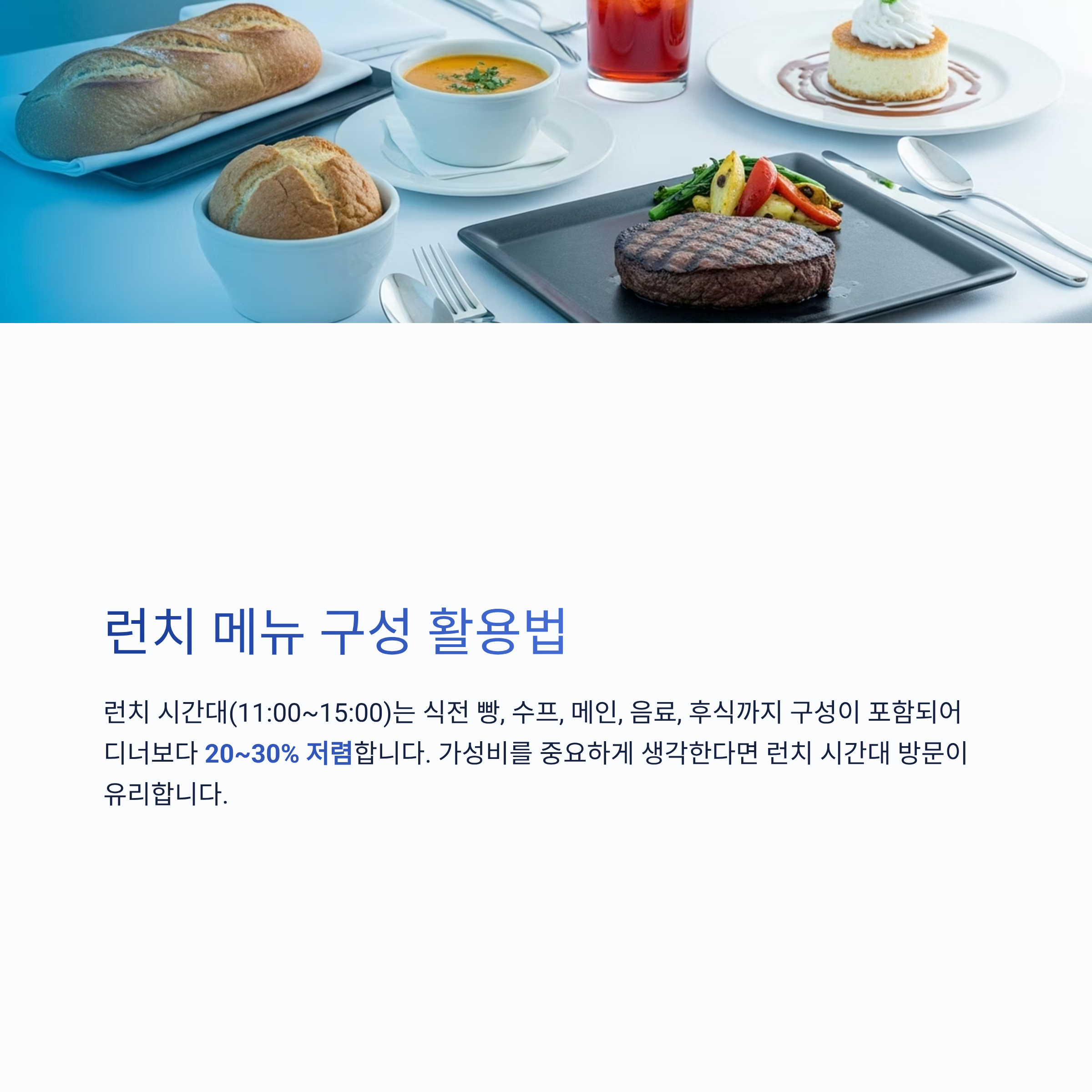 가성비를 중요하게 생각한다면 런치 시간대 방문이 유리합니다.