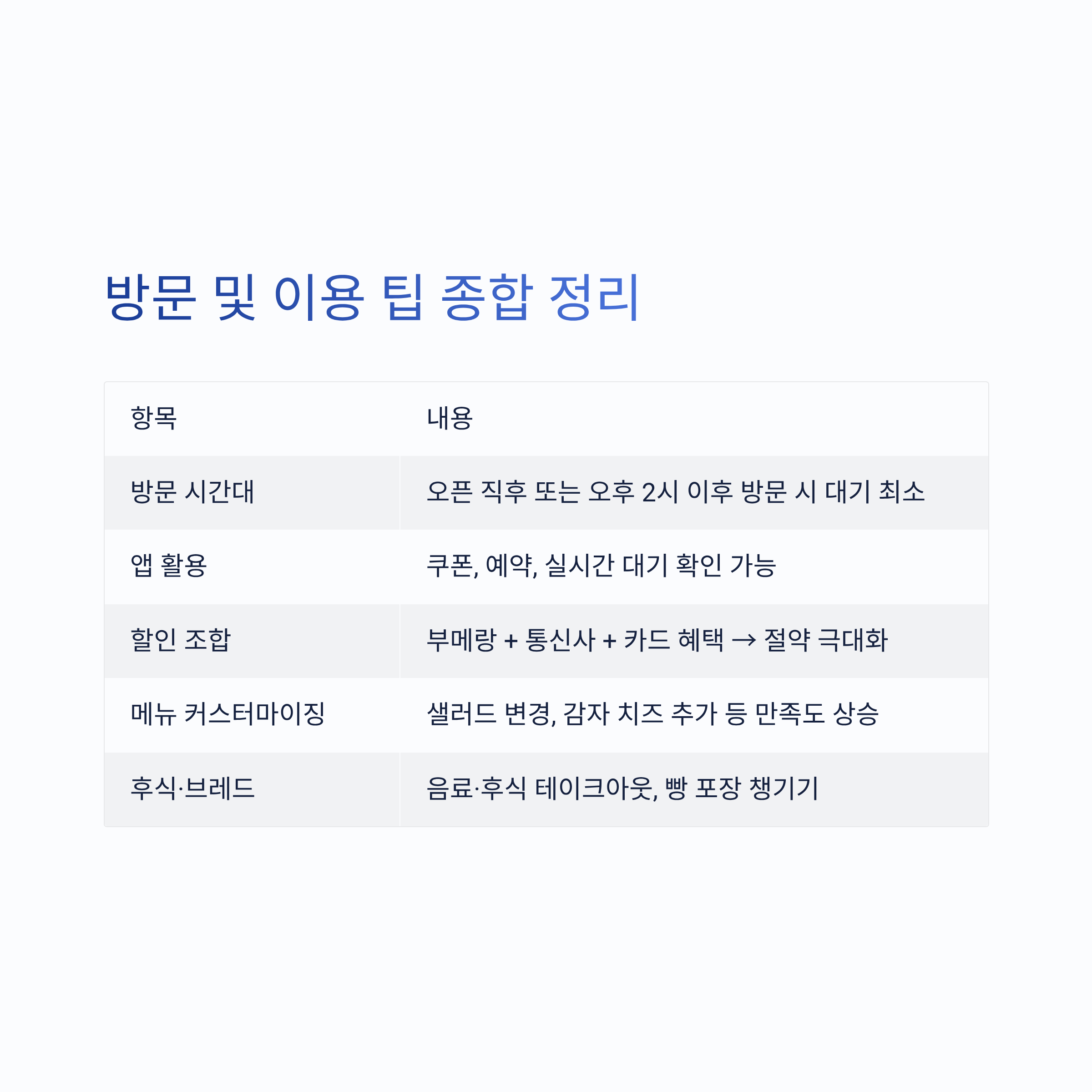 | 앱 활용 | 쿠폰, 예약, 실시간 대기 확인 가능 |