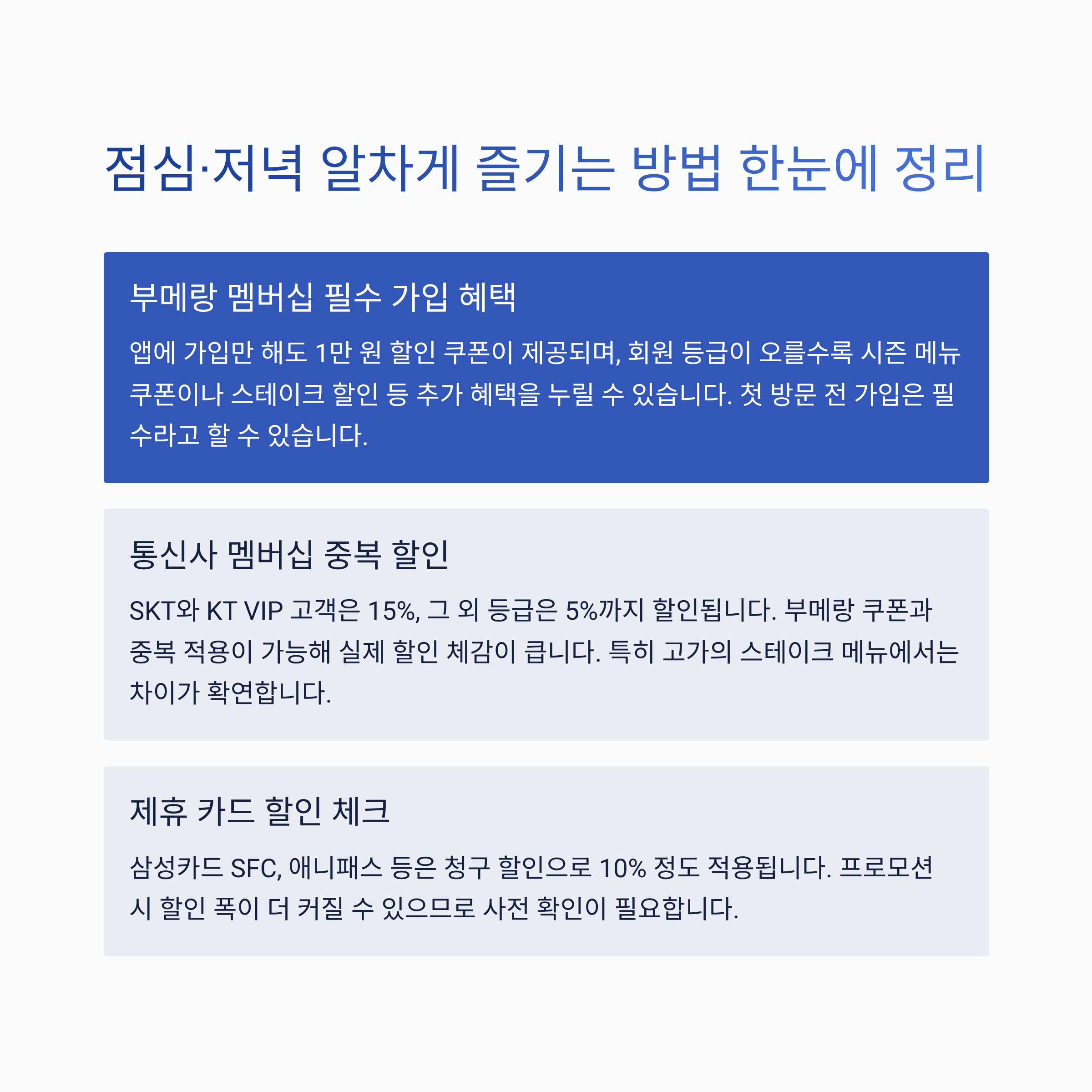 | 할인 조합 | 부메랑 + 통신사 + 카드 혜택 → 절약 극대화 |