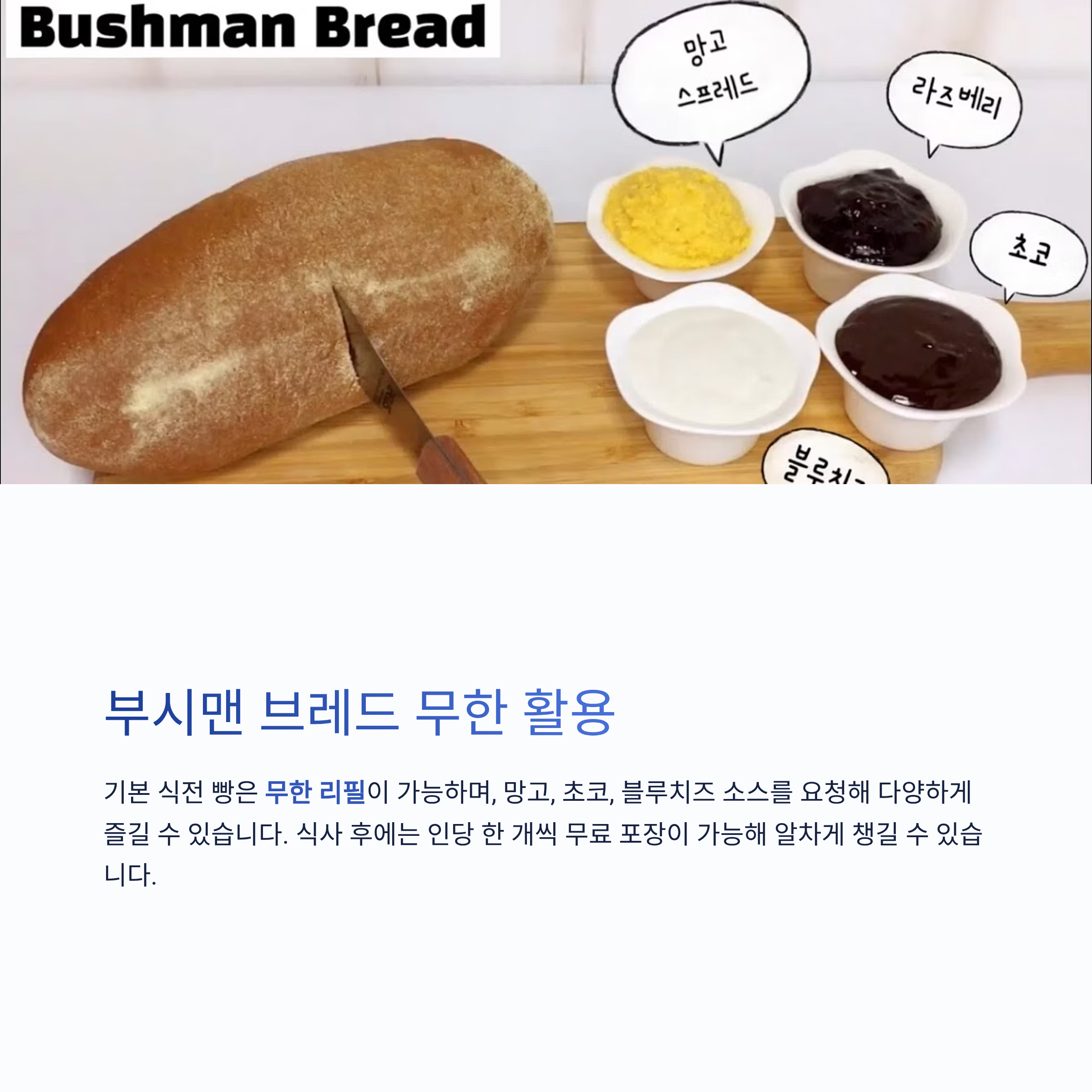 런치 시간대(오전 11시~오후 3시) 주문시 부시맨 브래드, 홈메이드 스프,