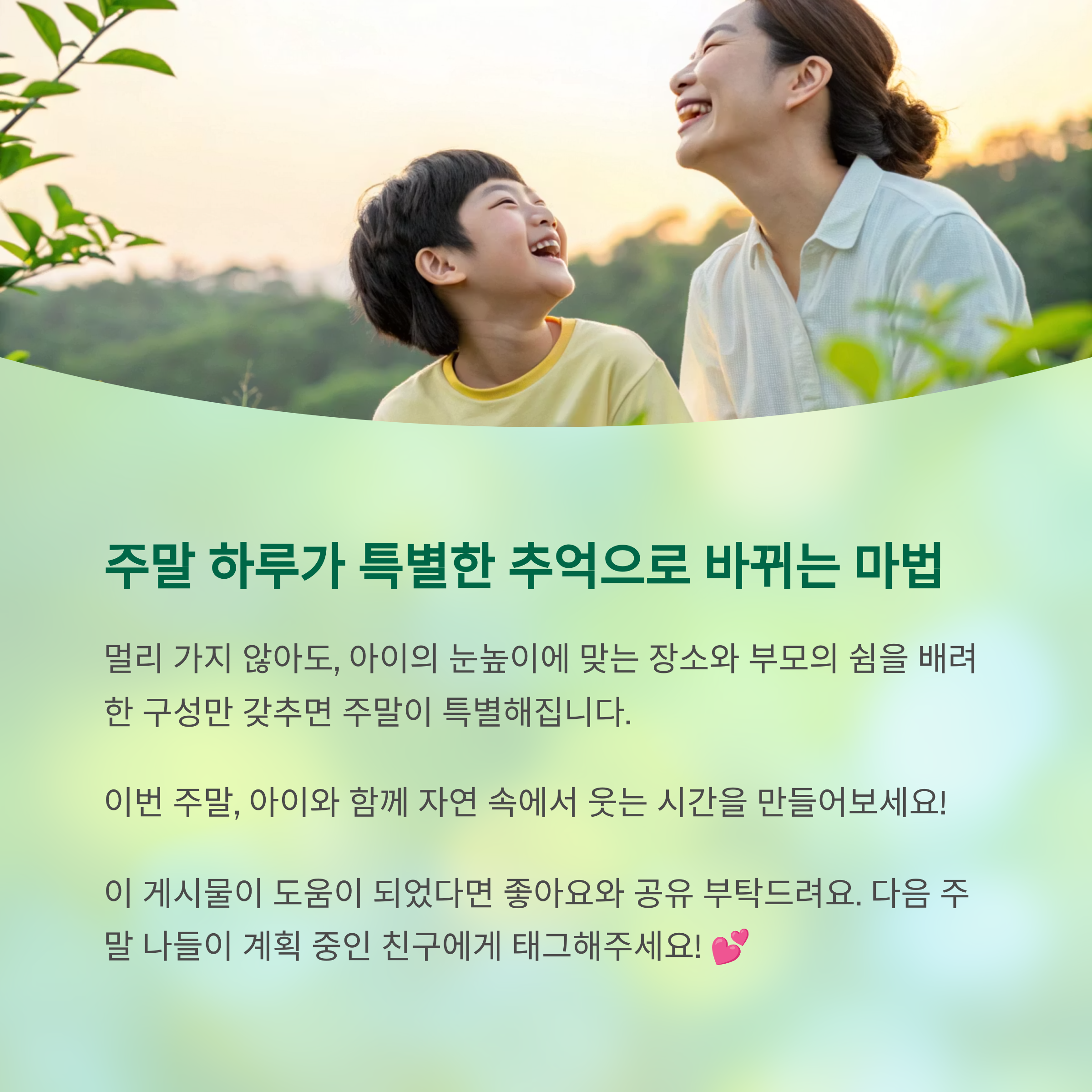 이번 주말, 아이와 함께 자연 속에서 웃는 시간을 만들어보세요
