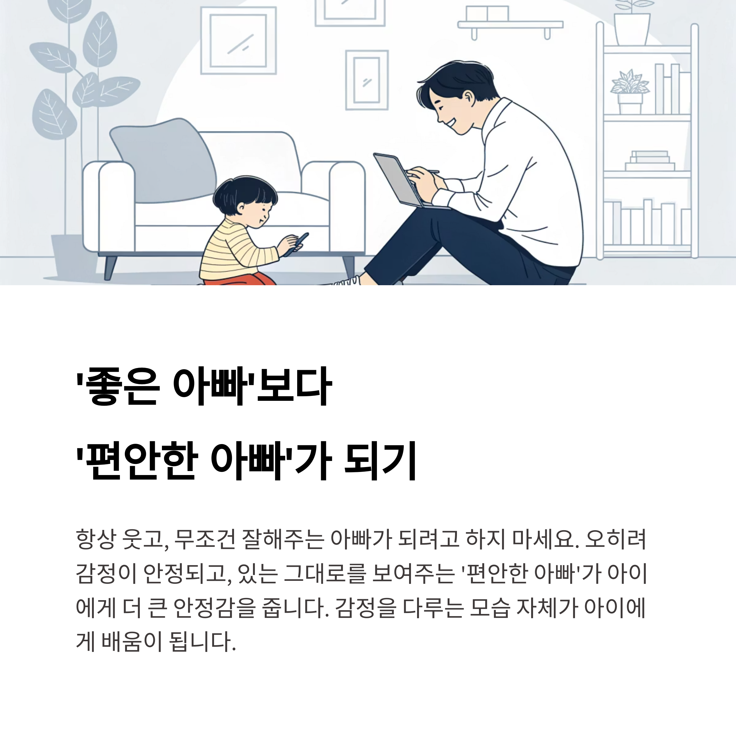 ‘편안한 아빠’가 아이에게 더 큰 안정감을 줍니다.