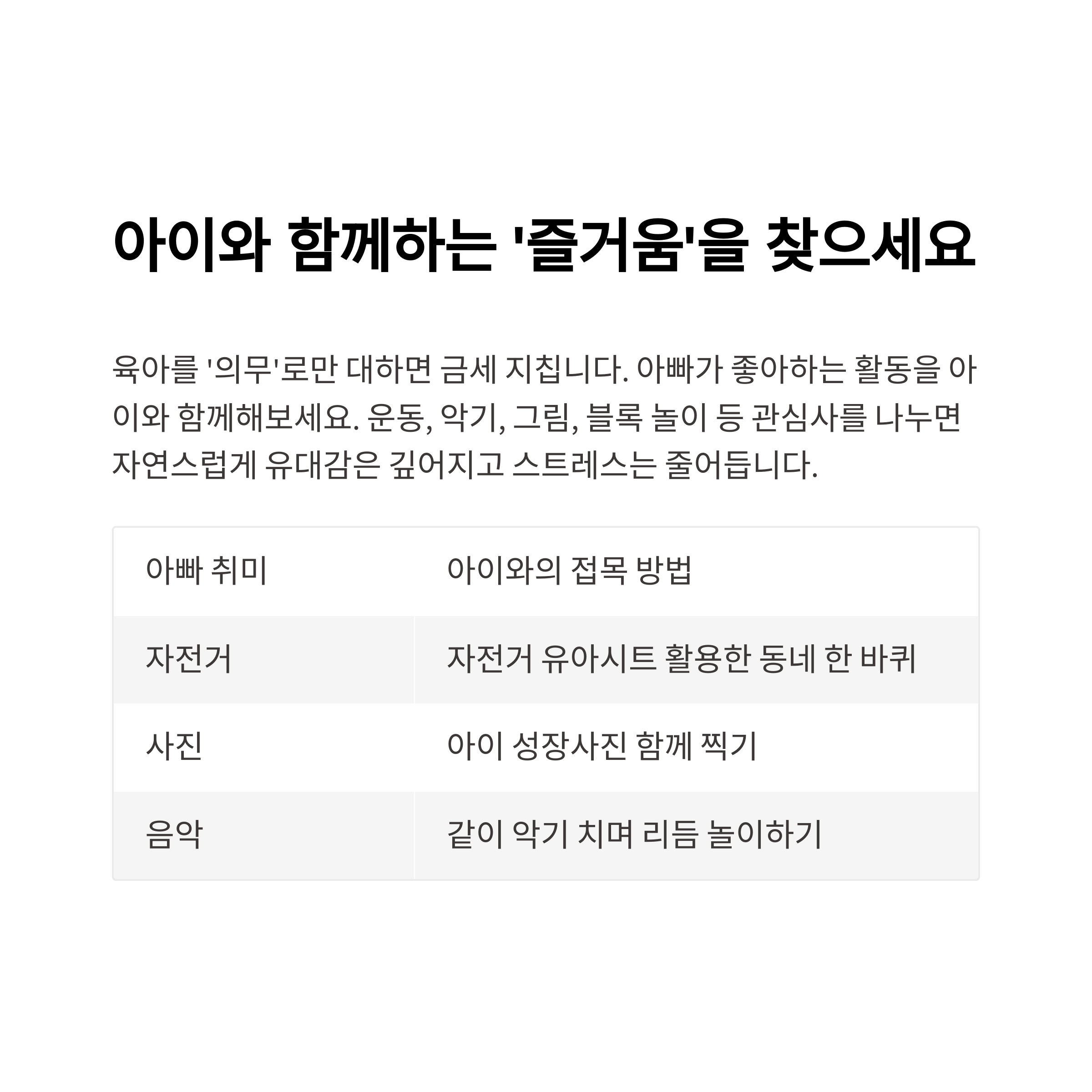 아빠가 좋아하는 활동을 아이와 함께해보세요.