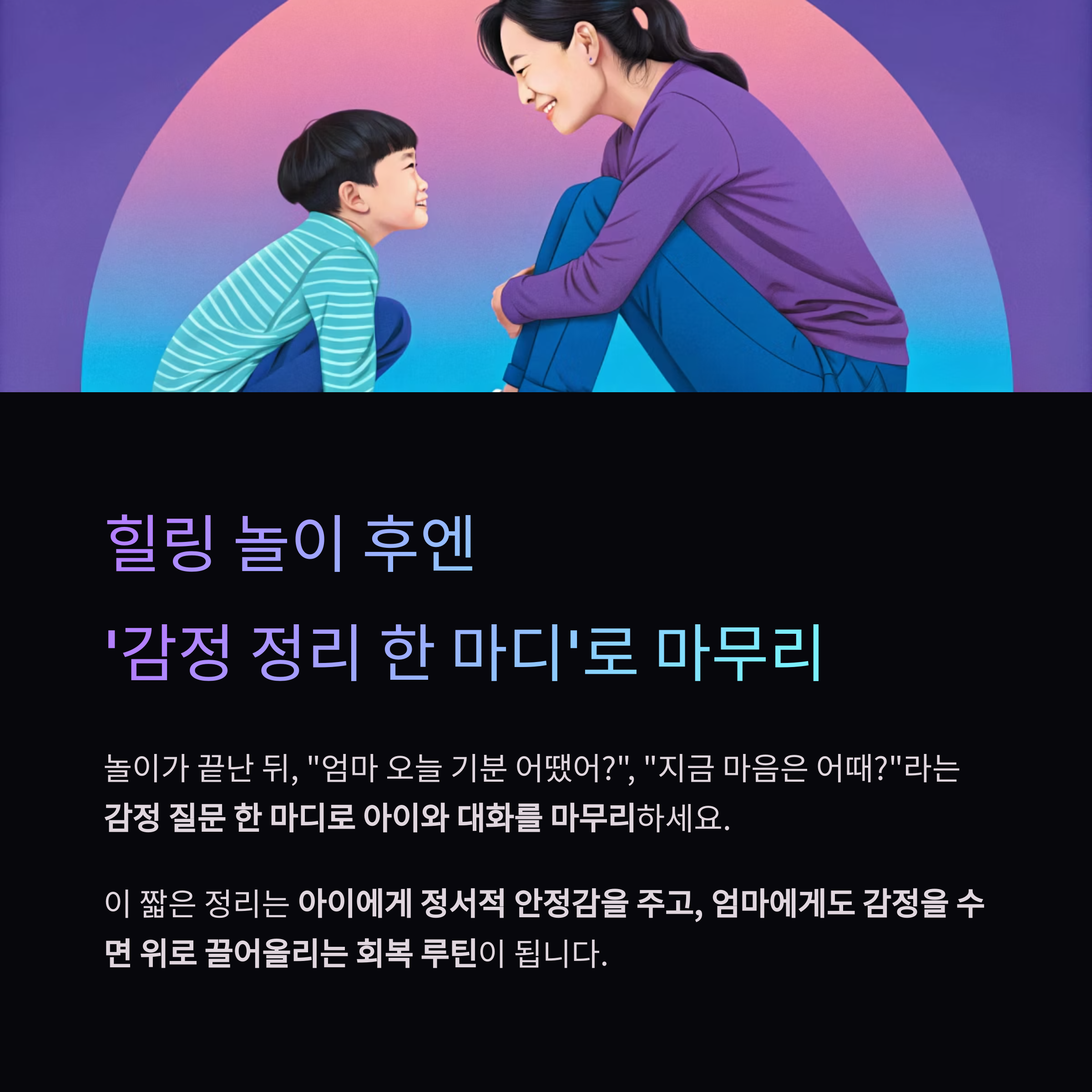 감정 질문 한 마디로 아이와 대화를 마무리하세요.