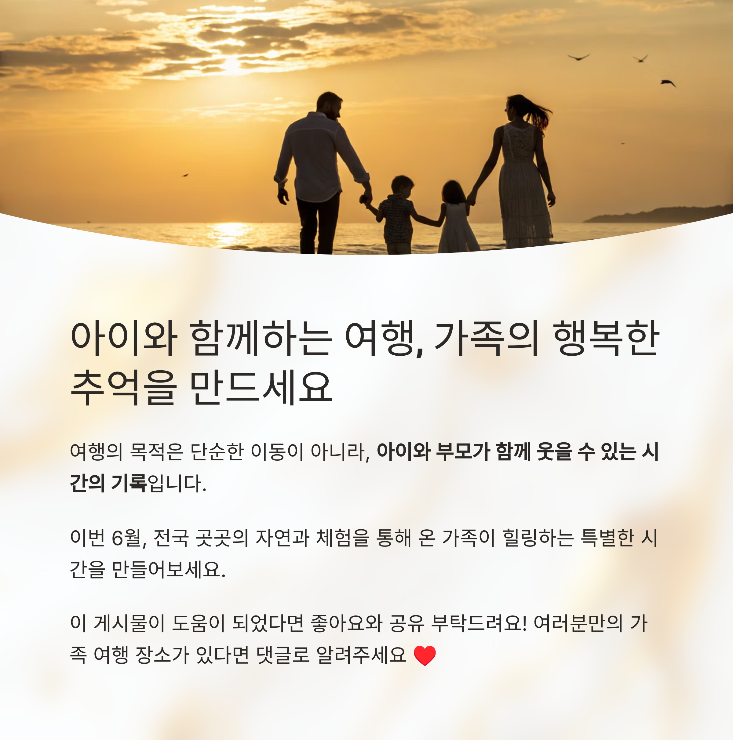 여행의 목적은 단순한 이동이 아니라, 아이와 부모가 함께 웃을 수 있는 시간의 기록입니다