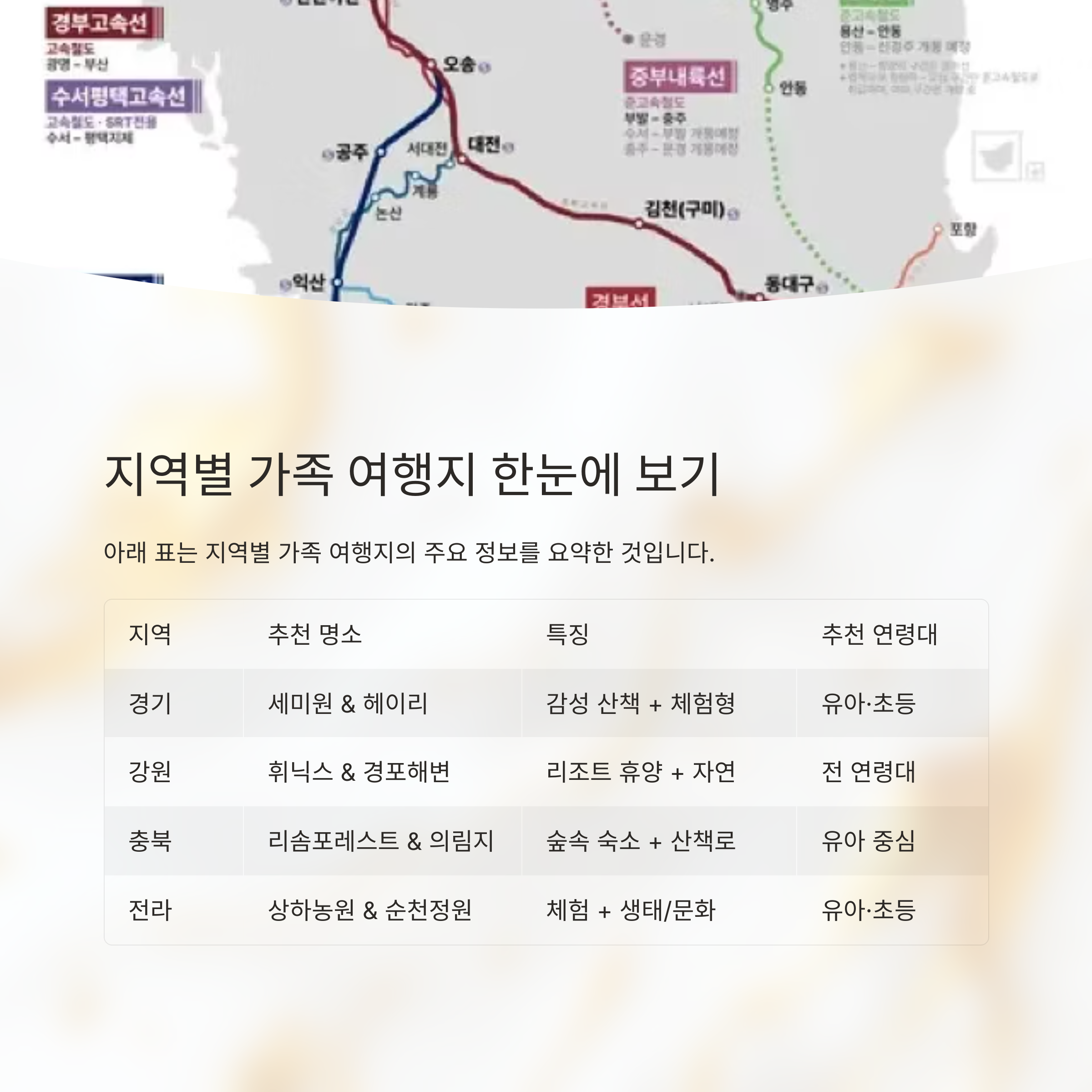 이번 글에서는 전국을 대표하는 아이 중심 가족 여행지 8곳을 지역별로 소개합니다