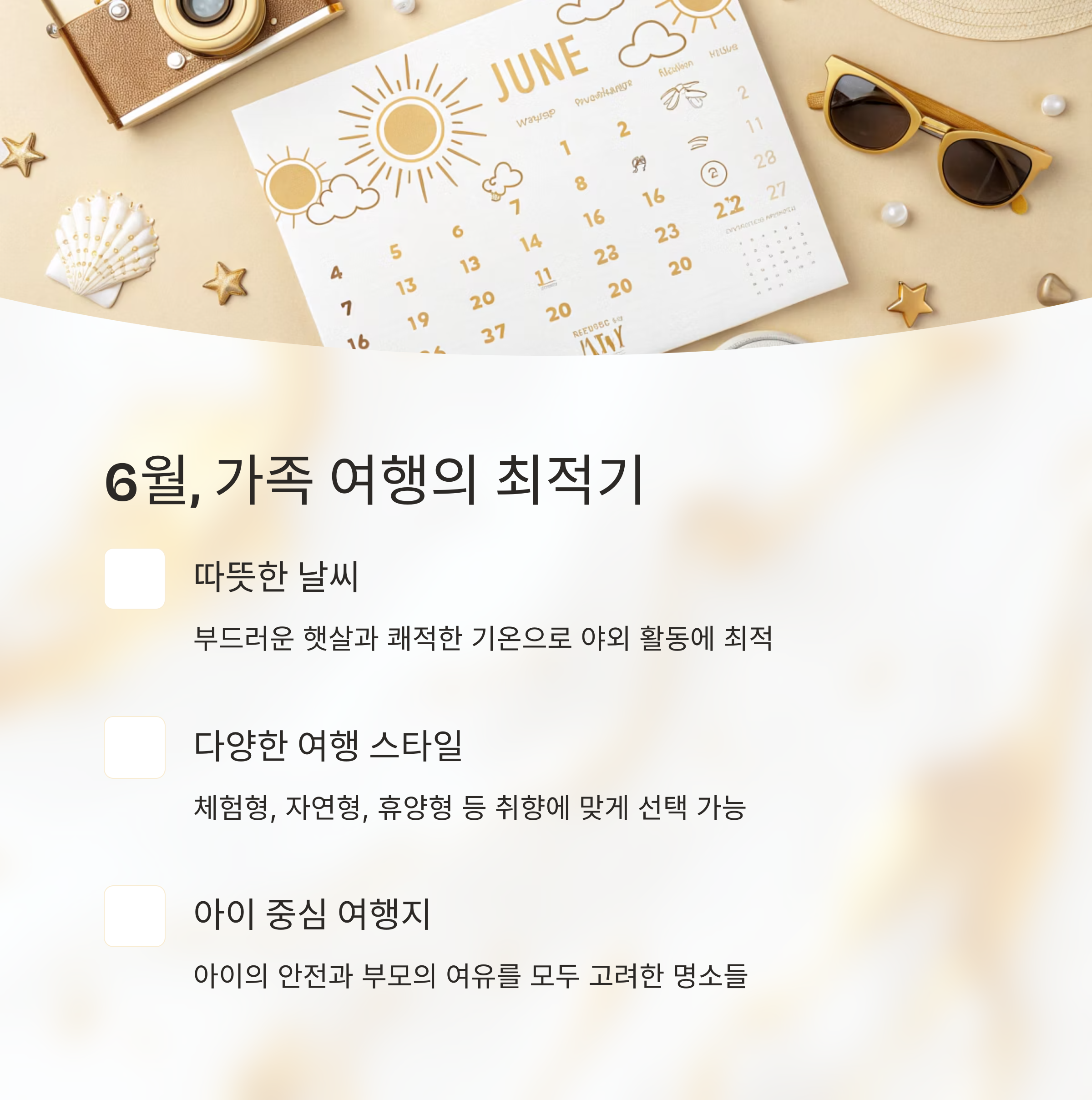 날씨는 따뜻하고 햇살은 부드러운 6월은 가족 여행에 최적화된 시즌입니다