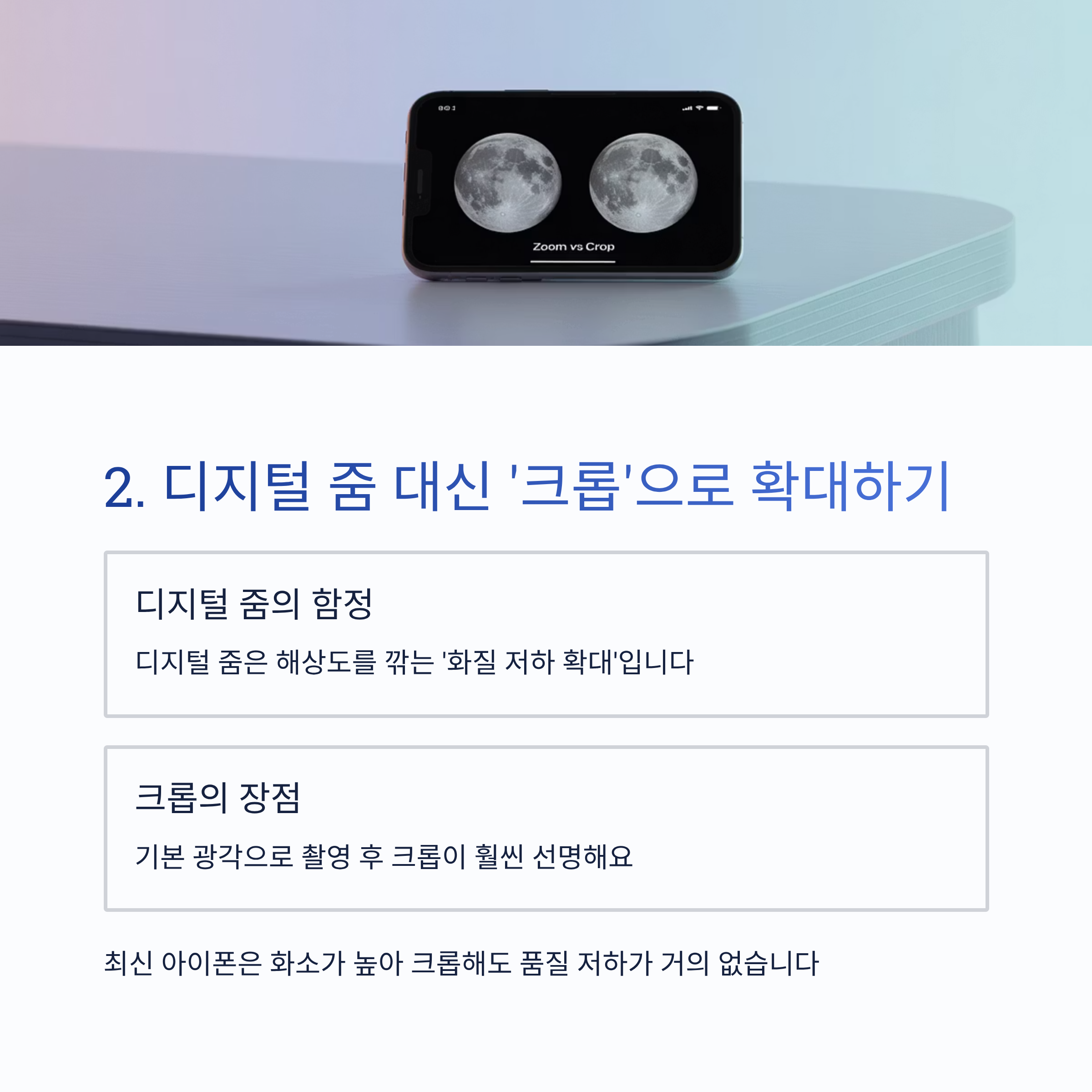 ✅ 최신 아이폰은 화소가 높아 크롭해도 품질 저하가 거의 없음