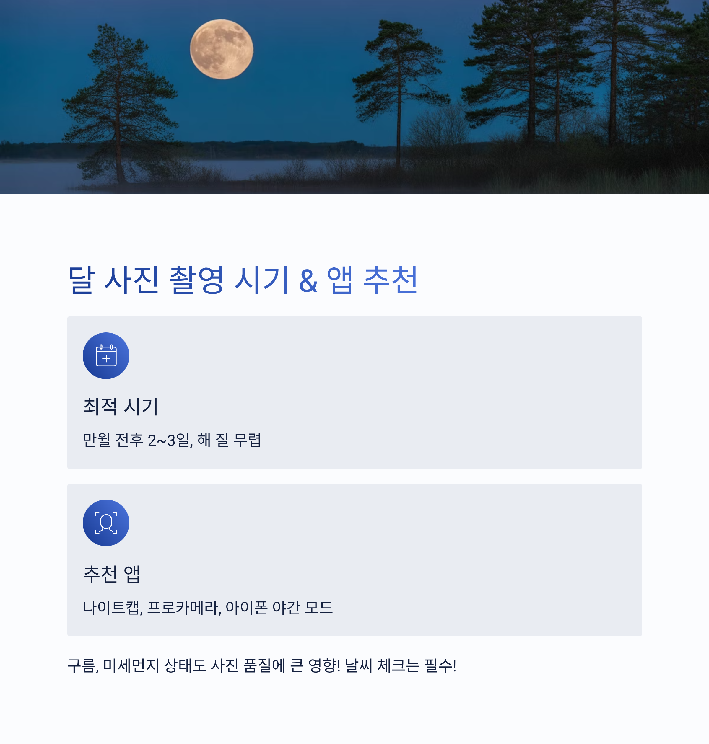 🌕 추가 팁: 달 사진 촬영 시기 & 앱 추천