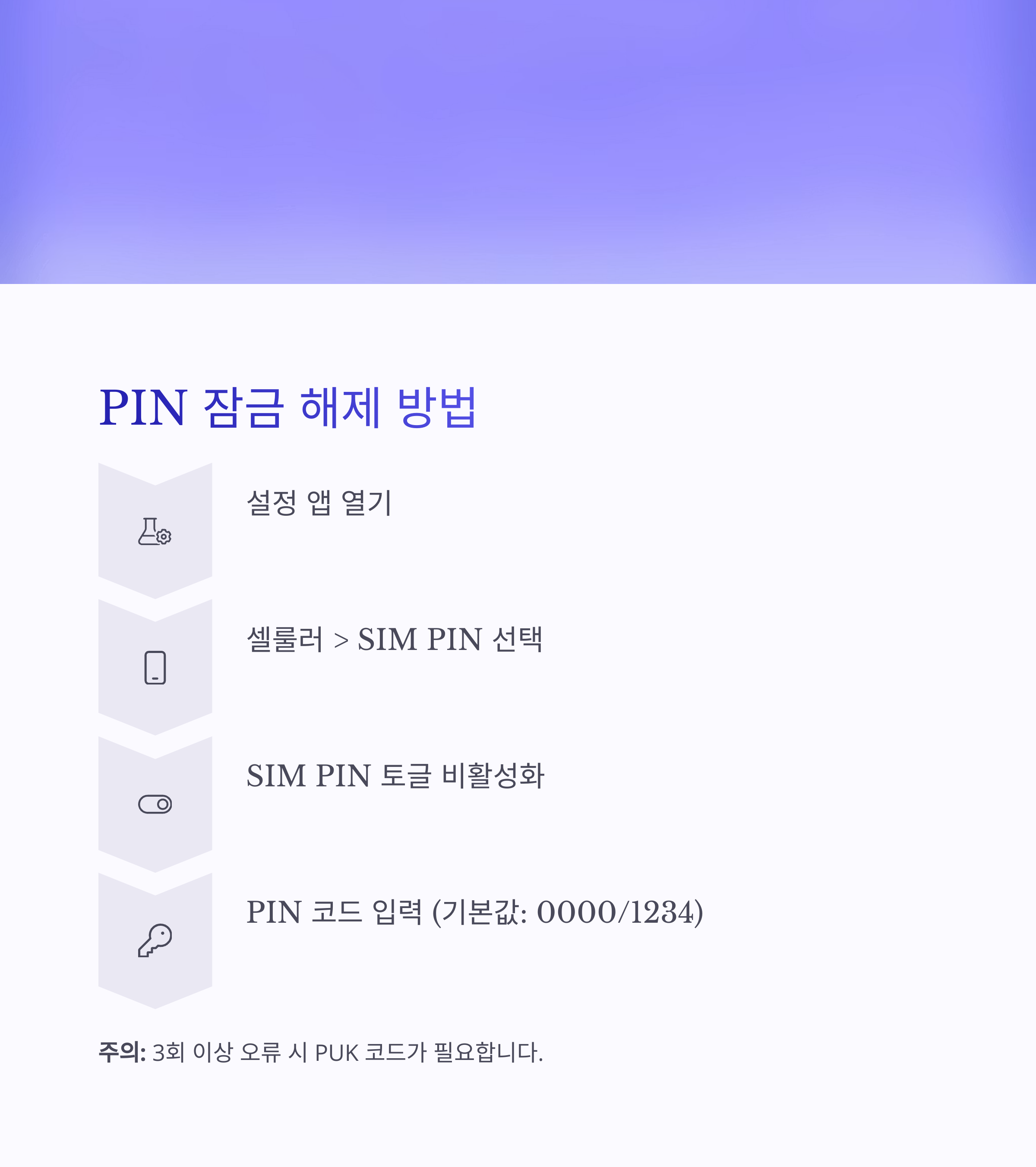 - "SIM이 잠겨 있음"이면 반드시 해제를 진행해야 합니다