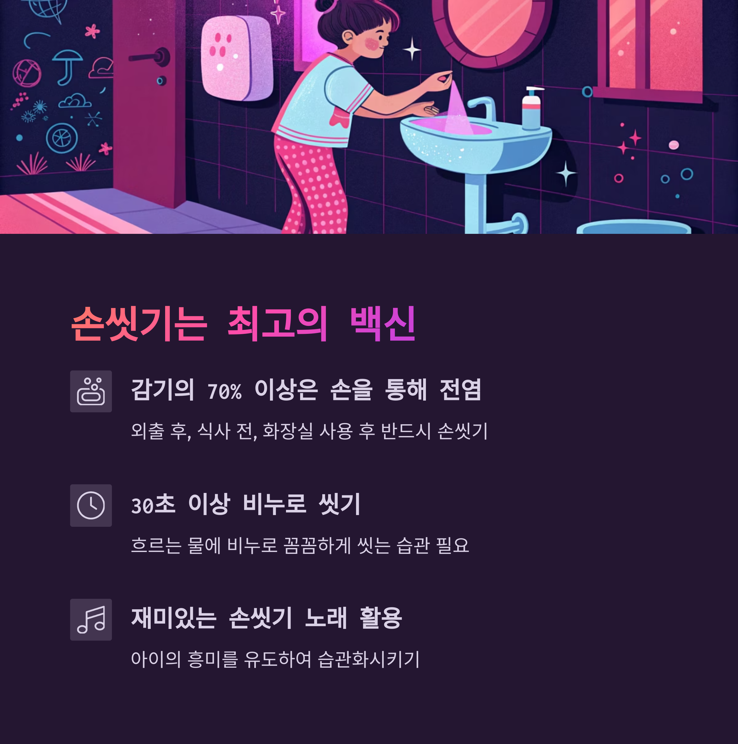 - 재미있는 손씻기 노래로 흥미 유도