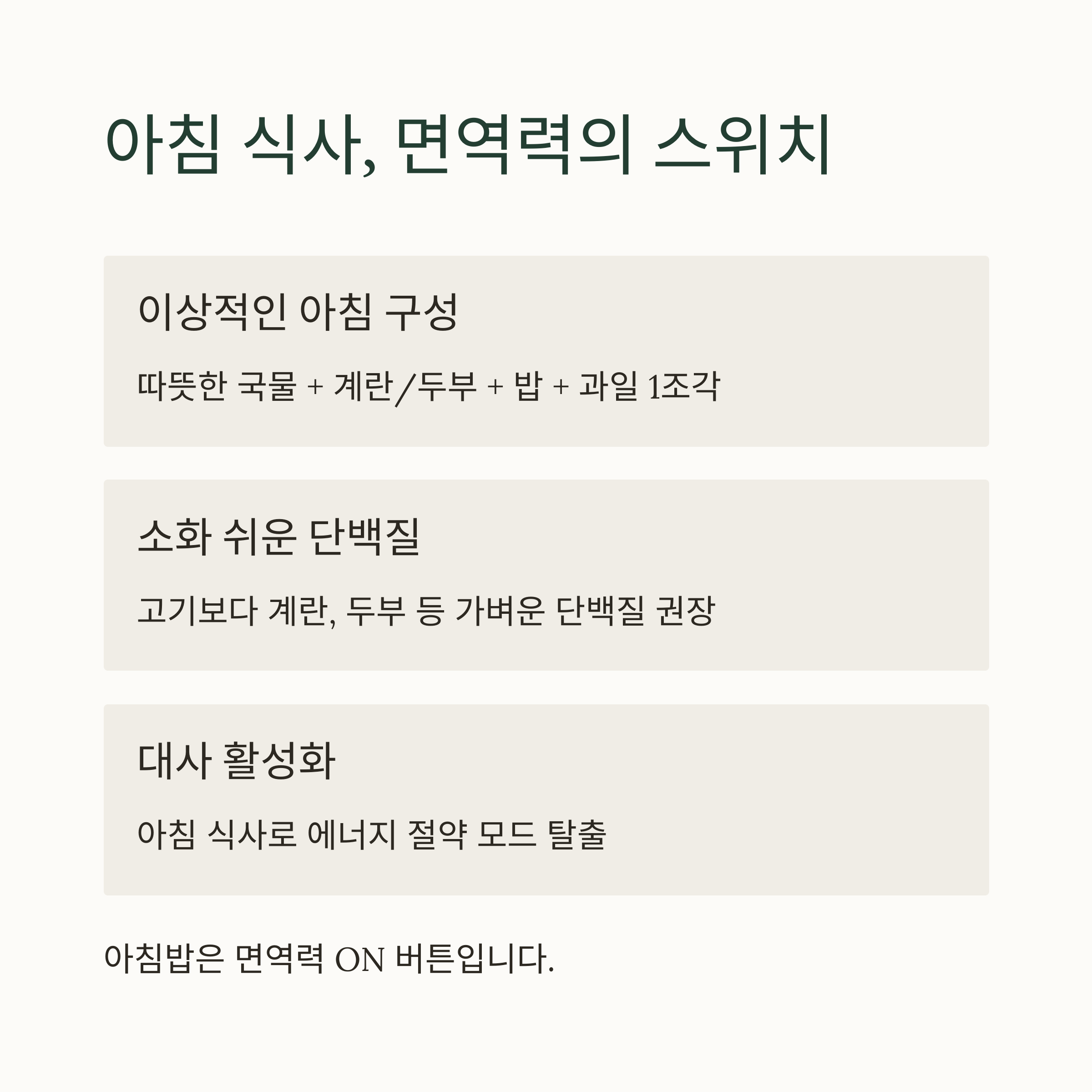 아침 식사로 대사를 활성화하면 면역력도 강화돼요.