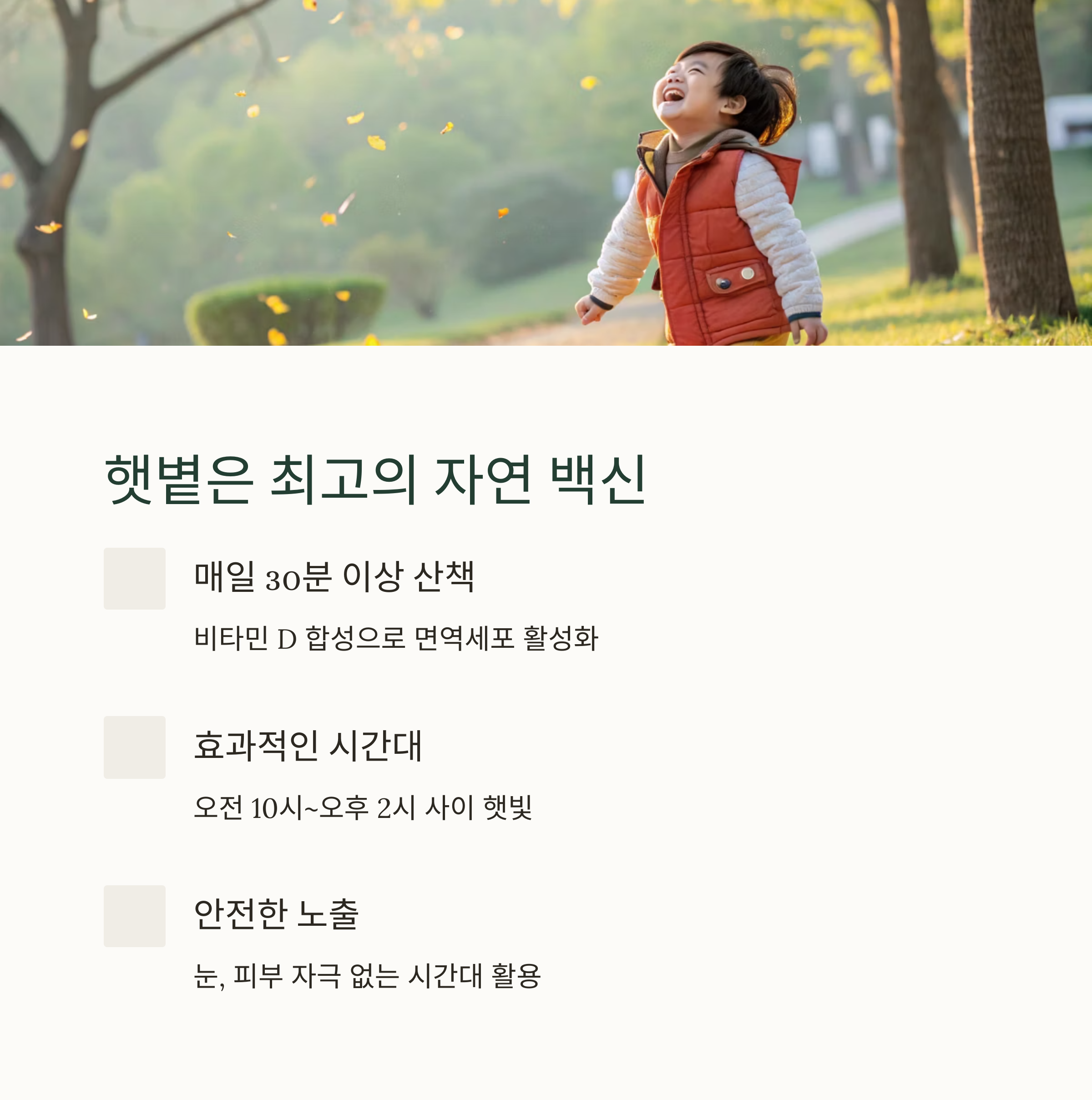 "매일 햇빛을 쐬는 아이는 감기에도 강합니다."