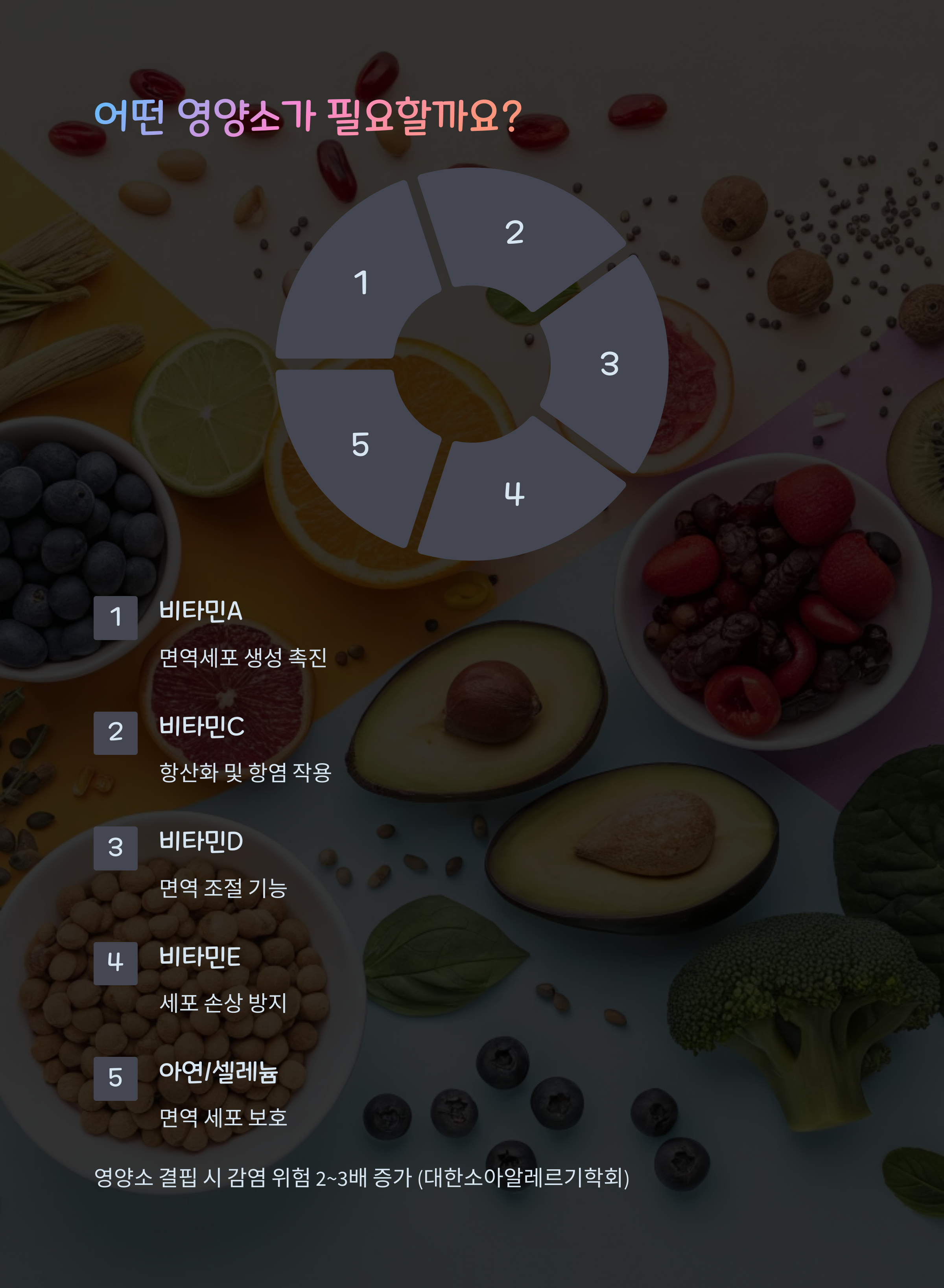 아이의 면역력 강화를 위해 필요한 대표 영양소는 아래와 같습니다