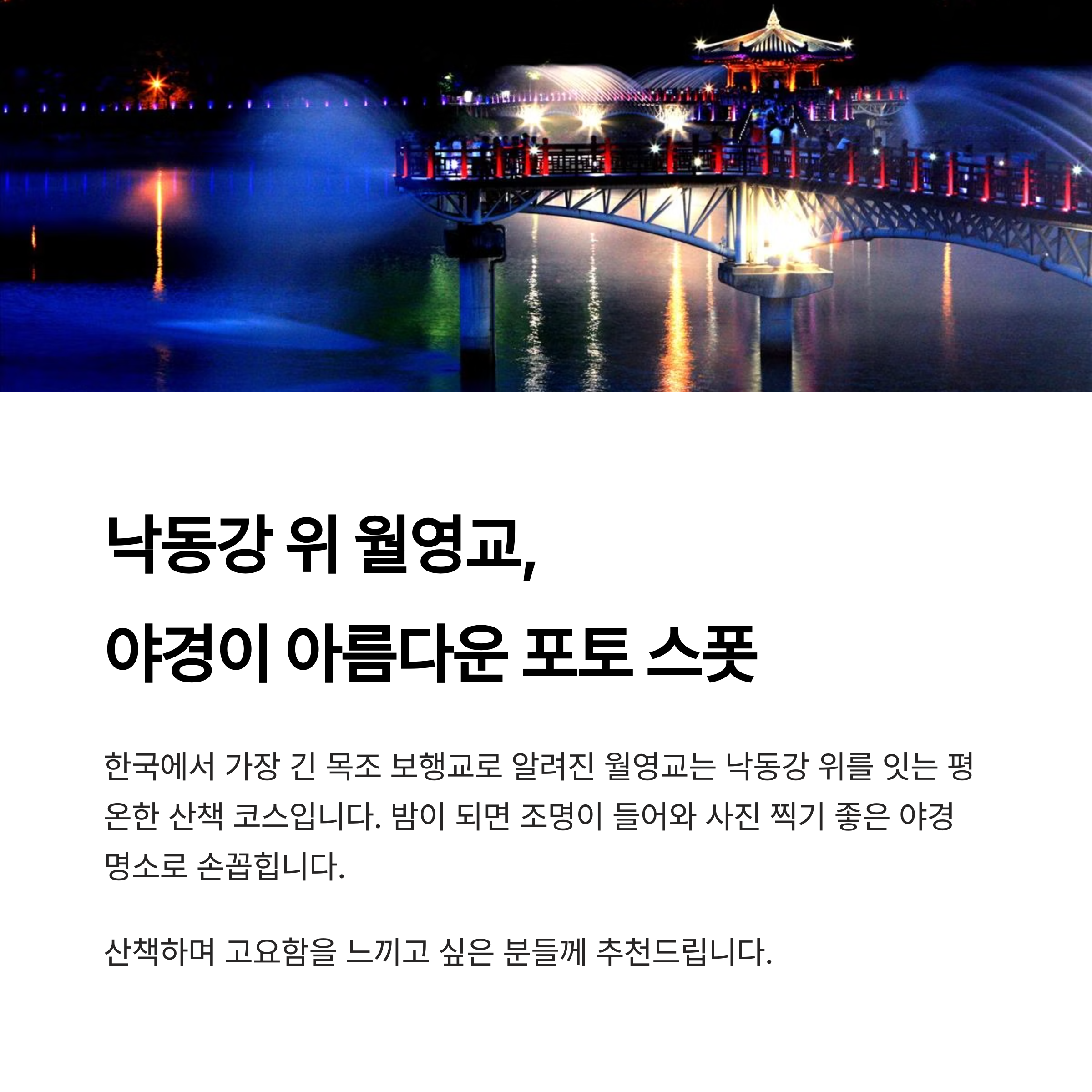 낙동강 위 월영교, 야경이 아름다운 포토 스폿