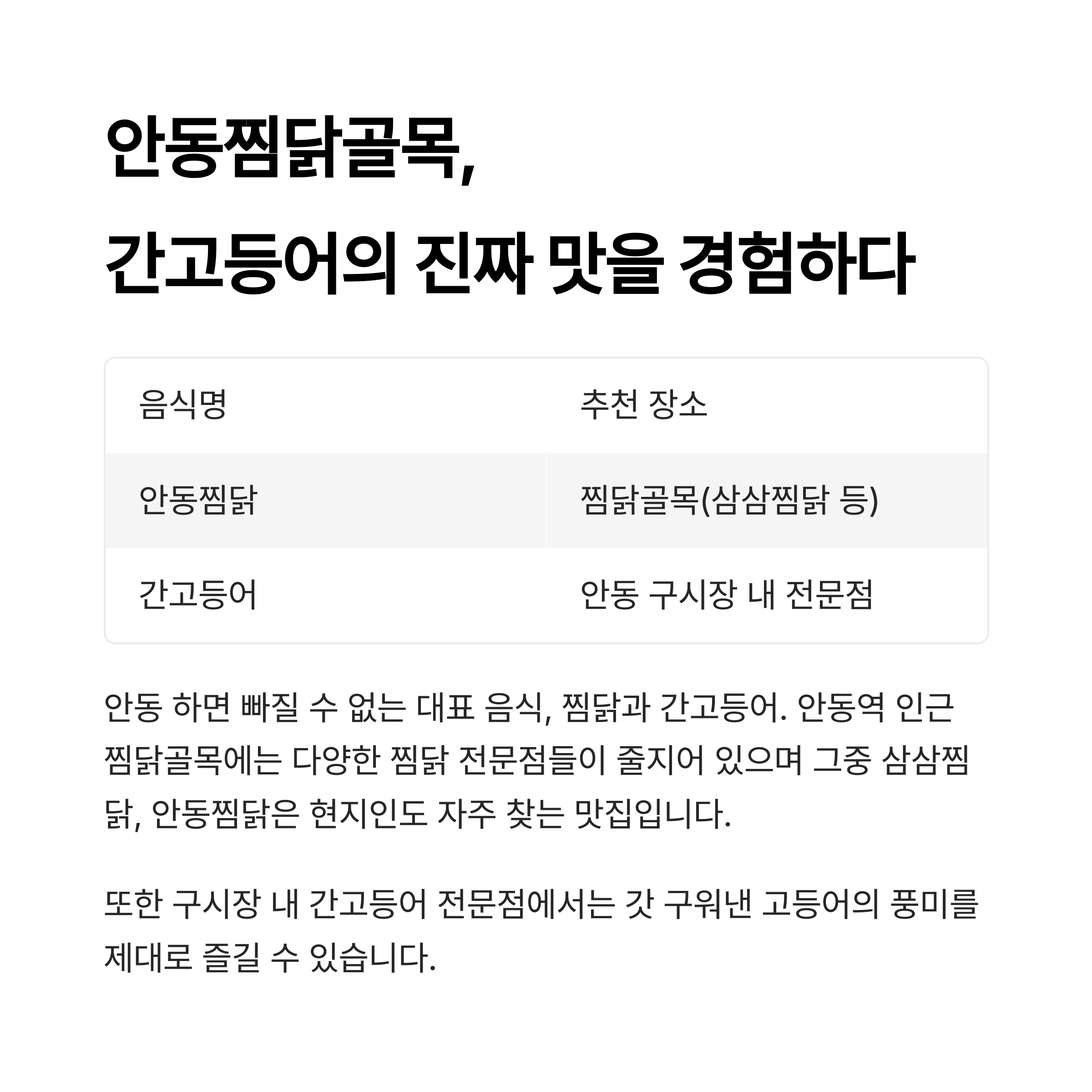 | 간고등어 | 안동 구시장 내 전문점 |