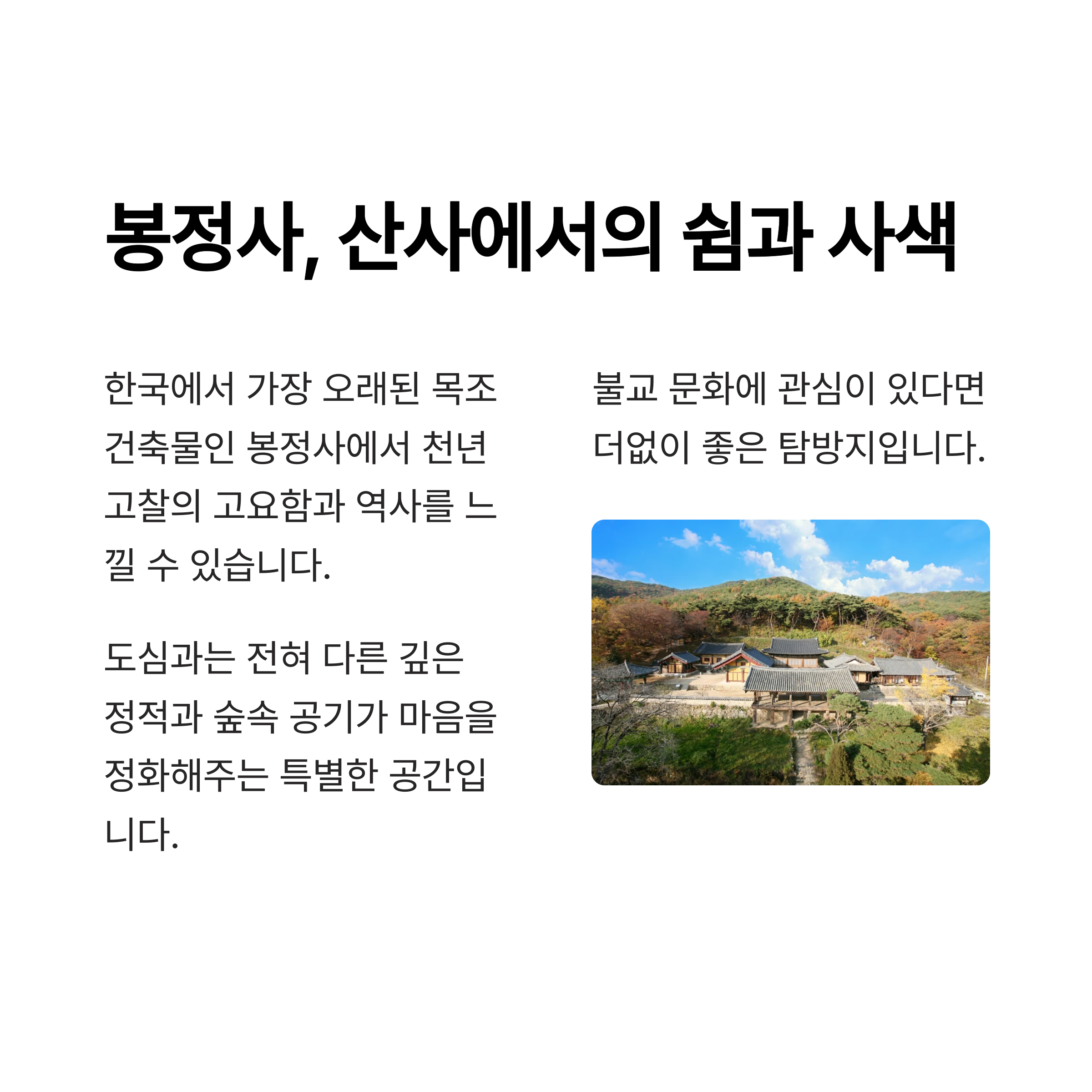 봉정사, 산사에서의 쉼과 사색