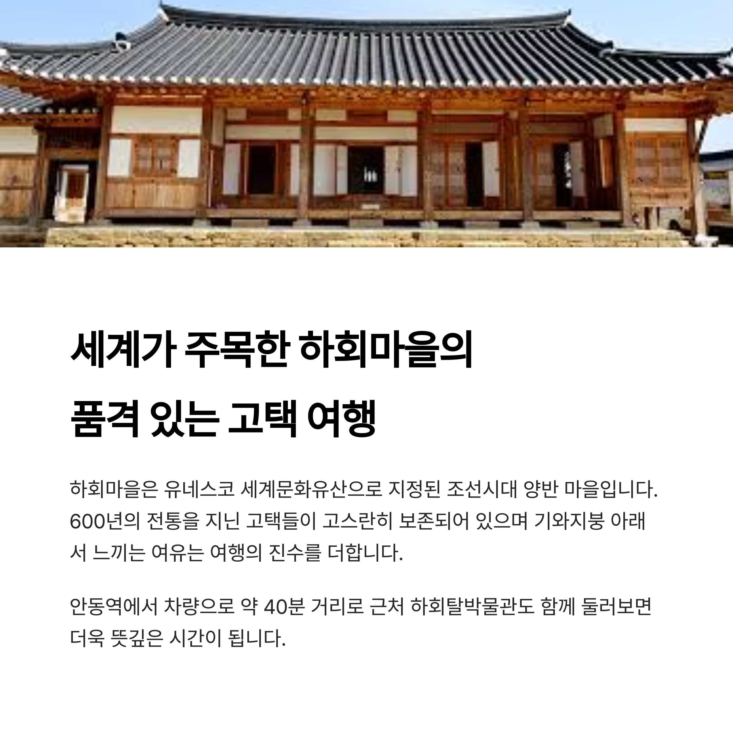 근처 하회탈박물관도 함께 둘러보면 더욱 뜻깊은 시간이 됩니다.