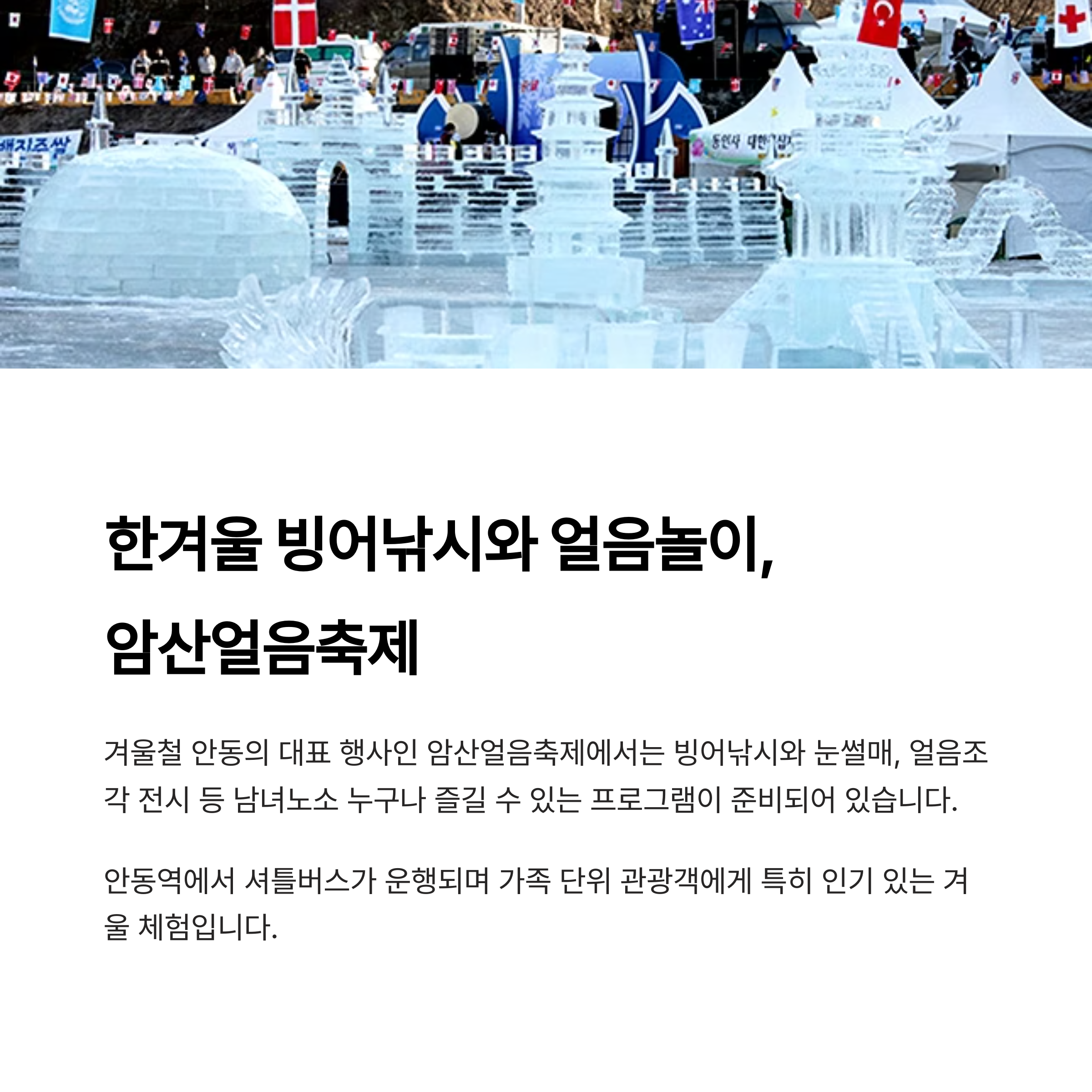 겨울철 안동의 대표 행사인 암산얼음축제에서는