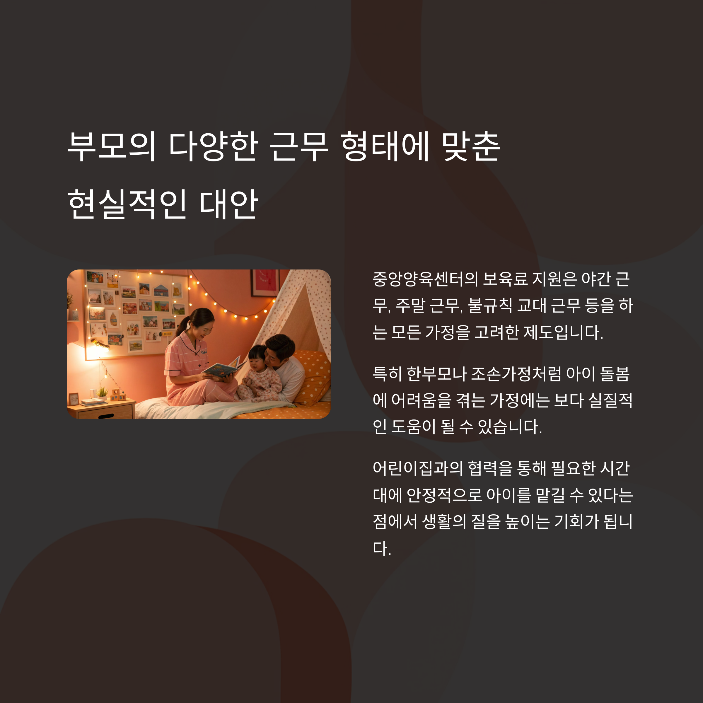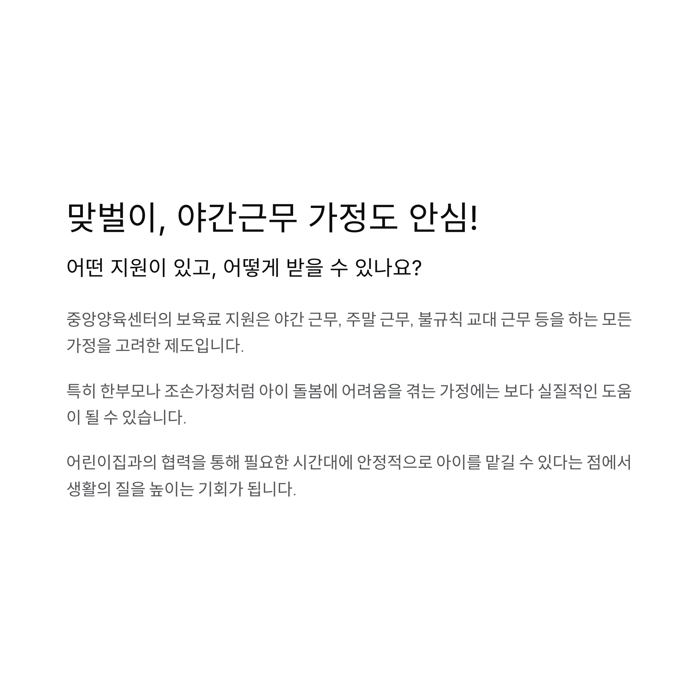 맞벌이, 야간근무 가정도 안심! 어떤 지원이 있고, 어떻게 받을 수 있나요?