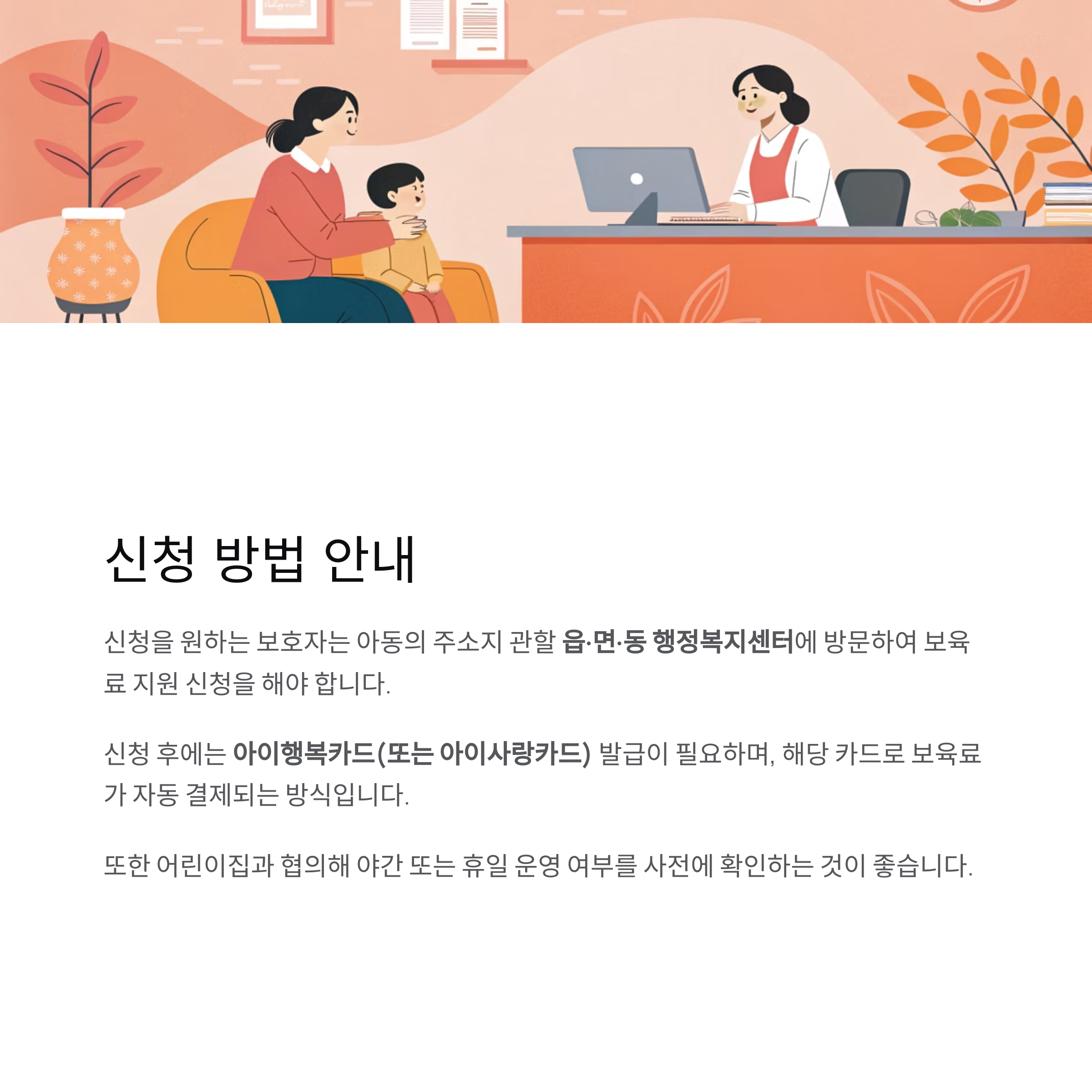 신청 후에는 아이행복카드(또는 아이사랑카드) 발급이 필요하며,
