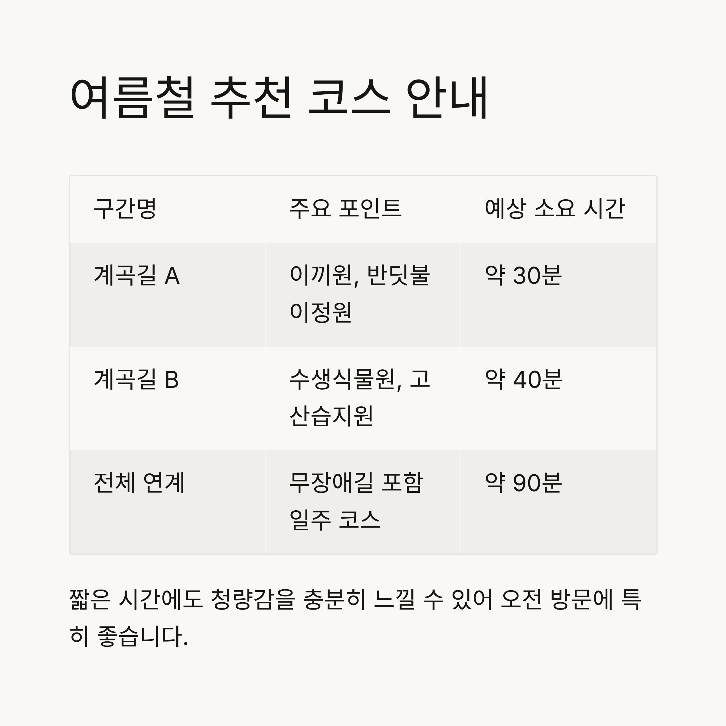 여름철 추천 코스 구성과 체류 시간