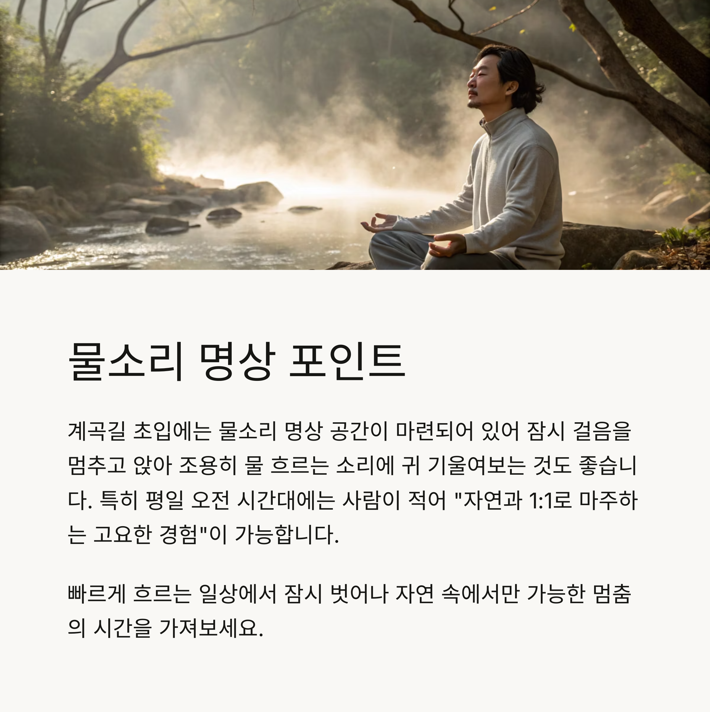 산책 그 이상의 경험, 물소리 명상 포인트