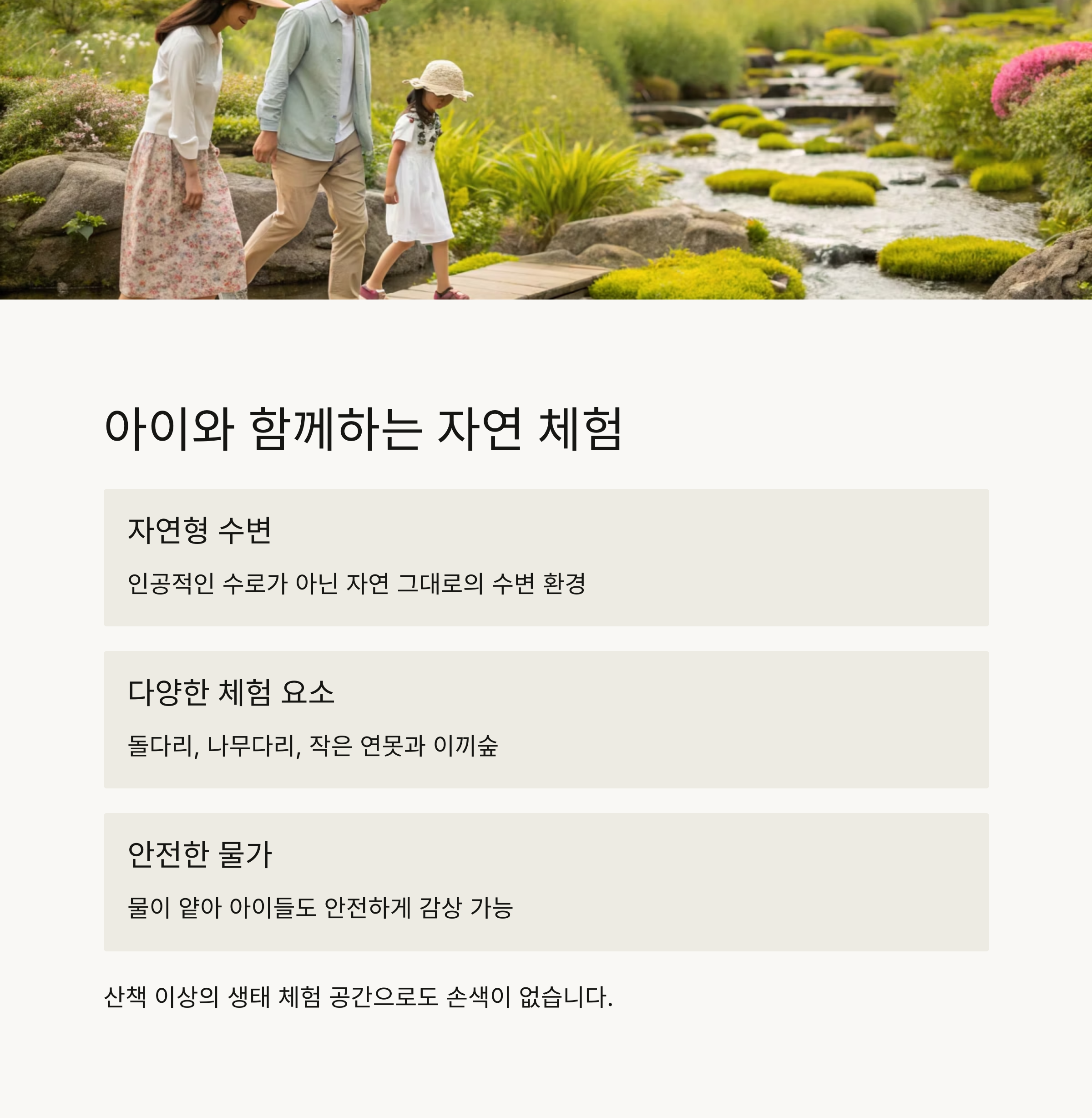 아이와 함께 즐기는 자연형 수변 체험