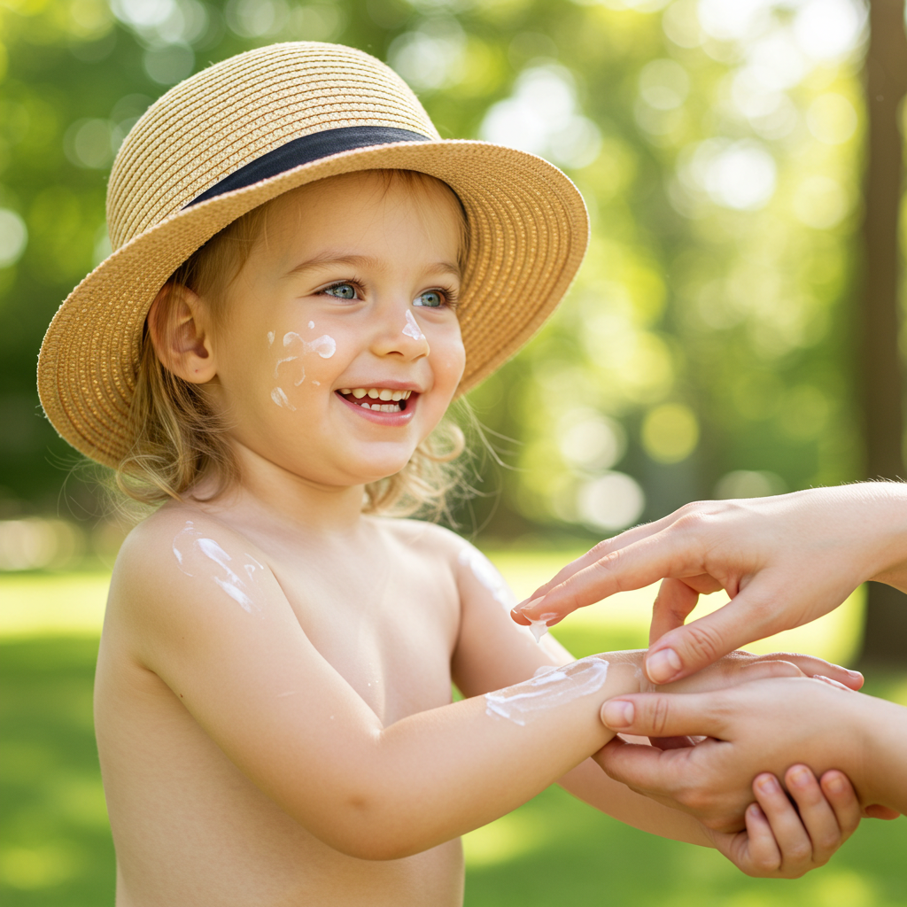 📊 자외선 차단: 외출 30분 전 아이 전용 선크림을 바르고, 모자나 긴팔 옷으로 피부를 보호하세요.